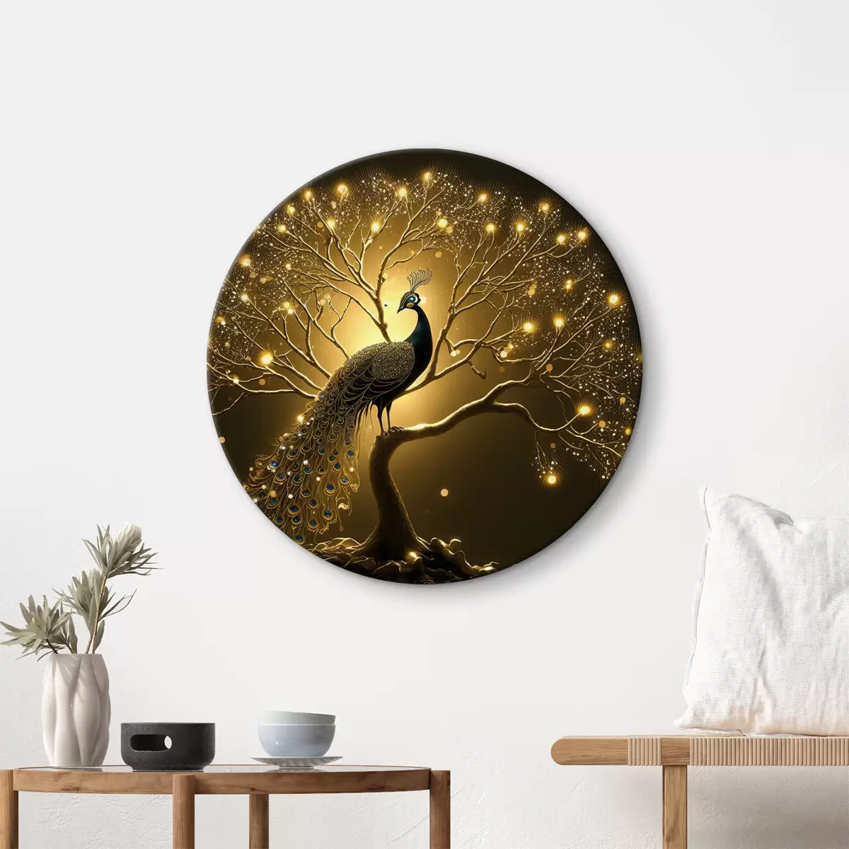 Runde Gemälde Pfau auf einem blühenden Baum r34876