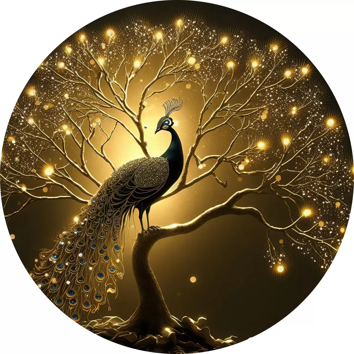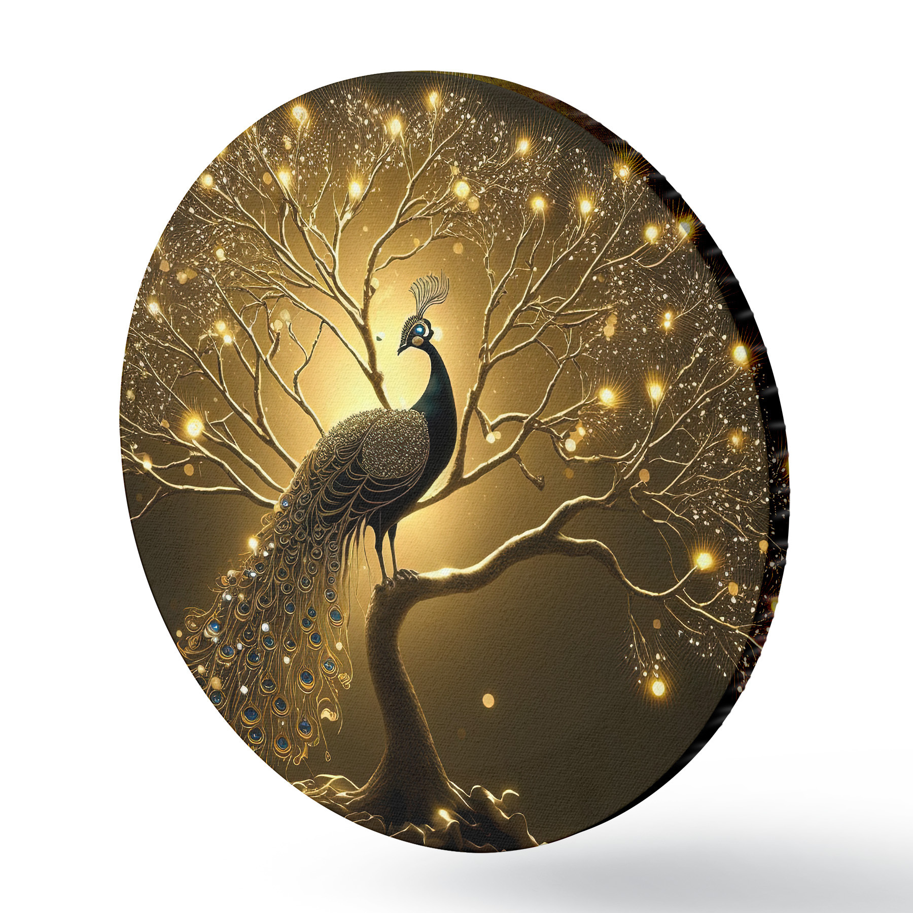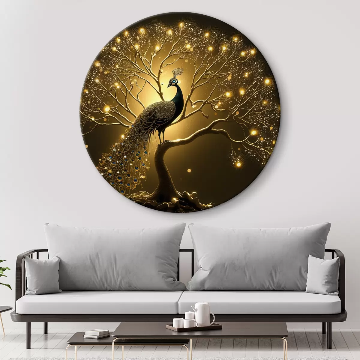 Runde Gemälde Pfau auf einem blühenden Baum r34876