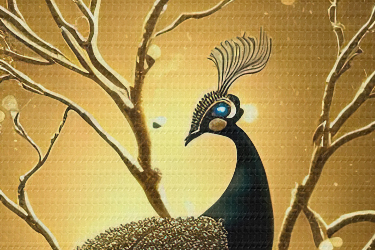 Bild Pfau auf einem blühenden Baum Nr r34876