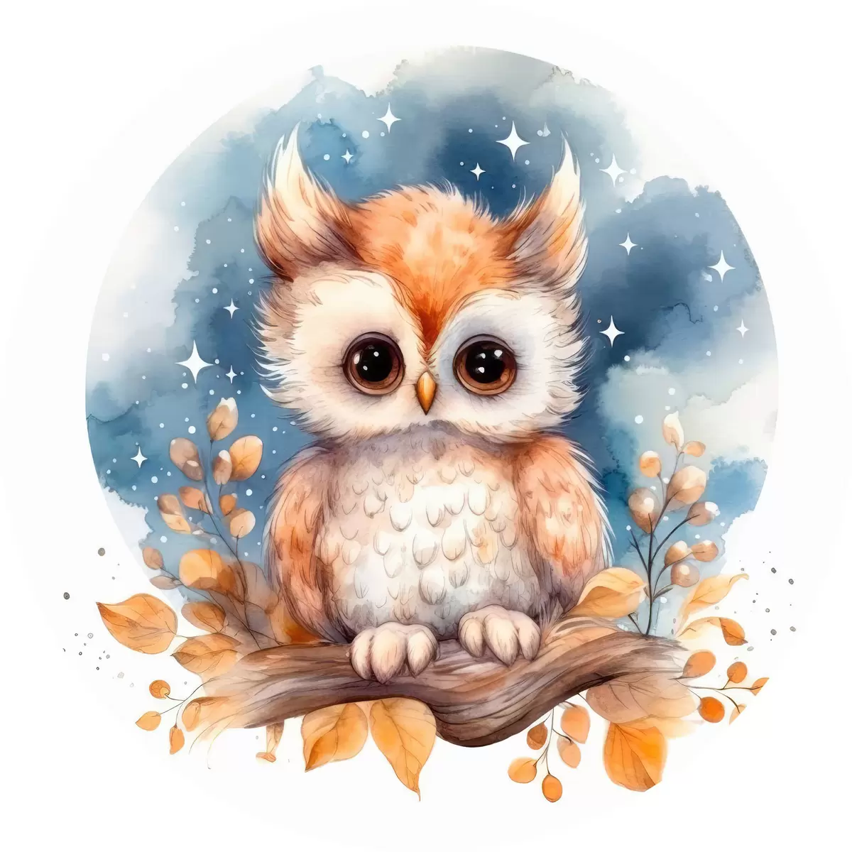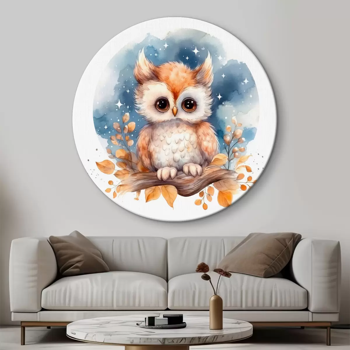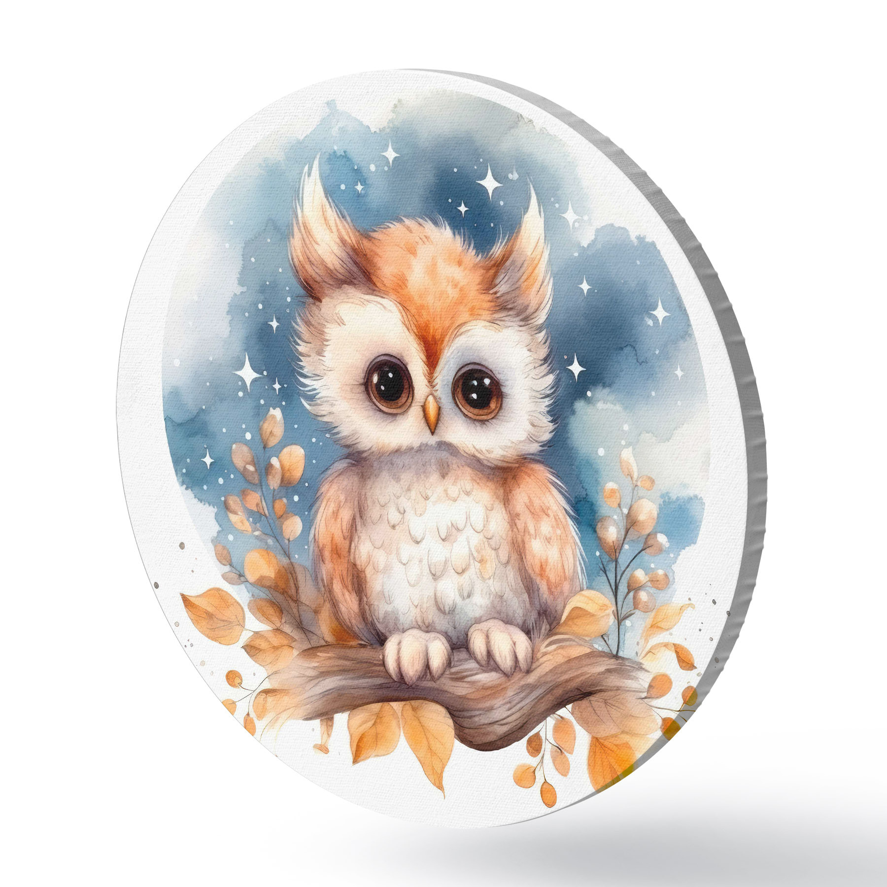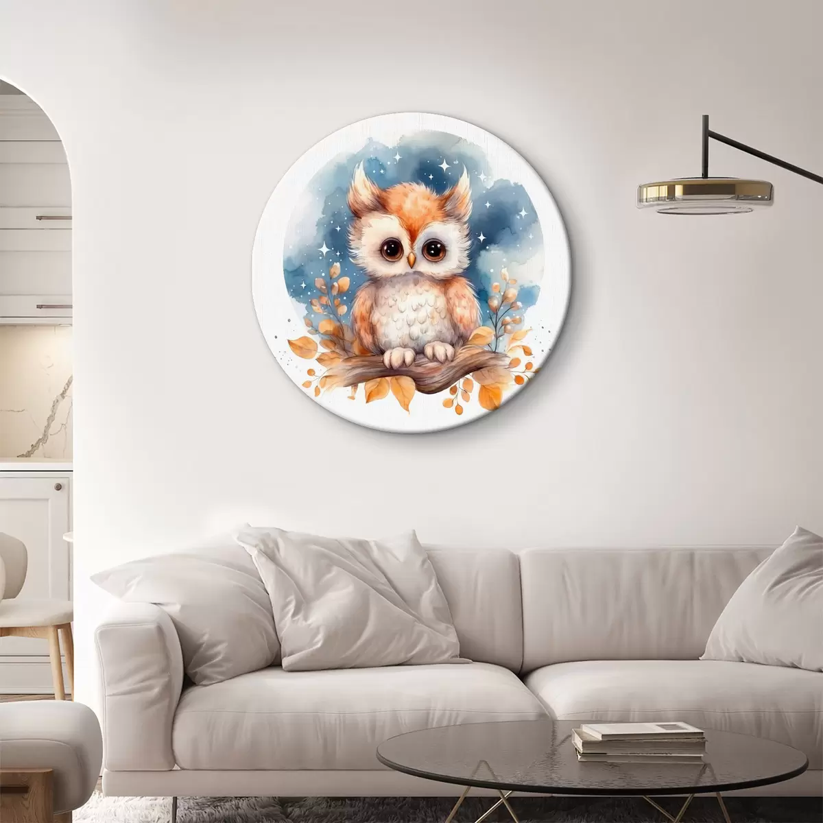 Runde Gemälde Fabelhafte kleine Eule und der Nachthimmel r34912