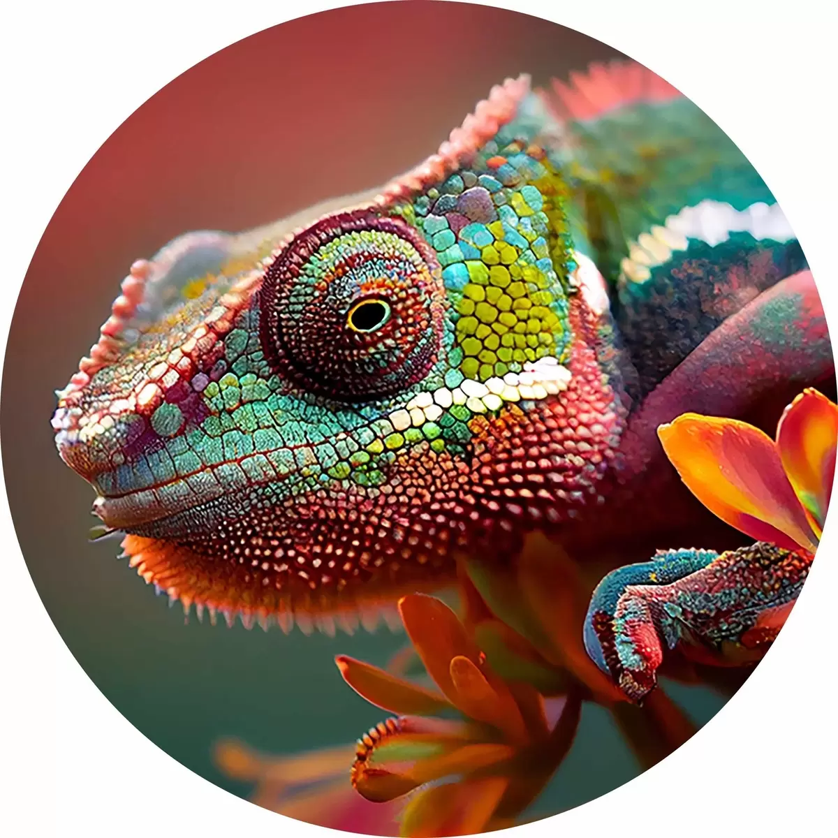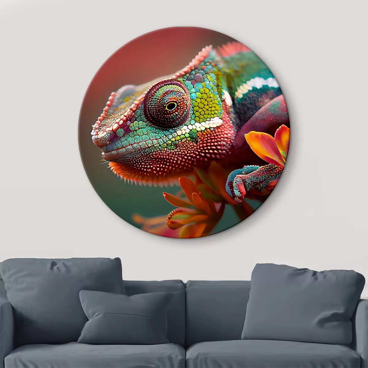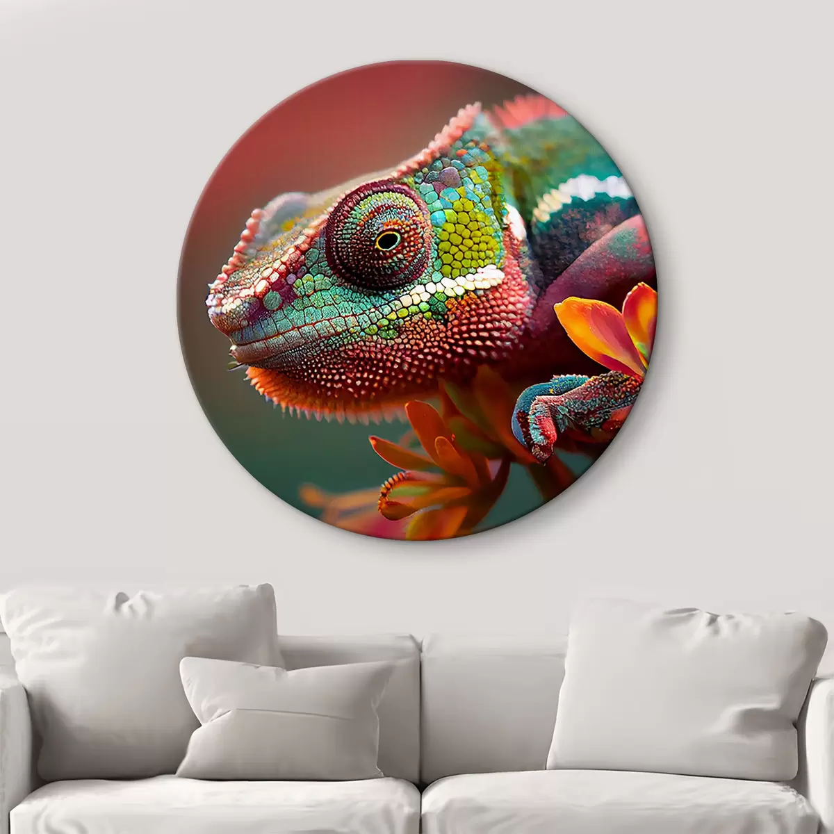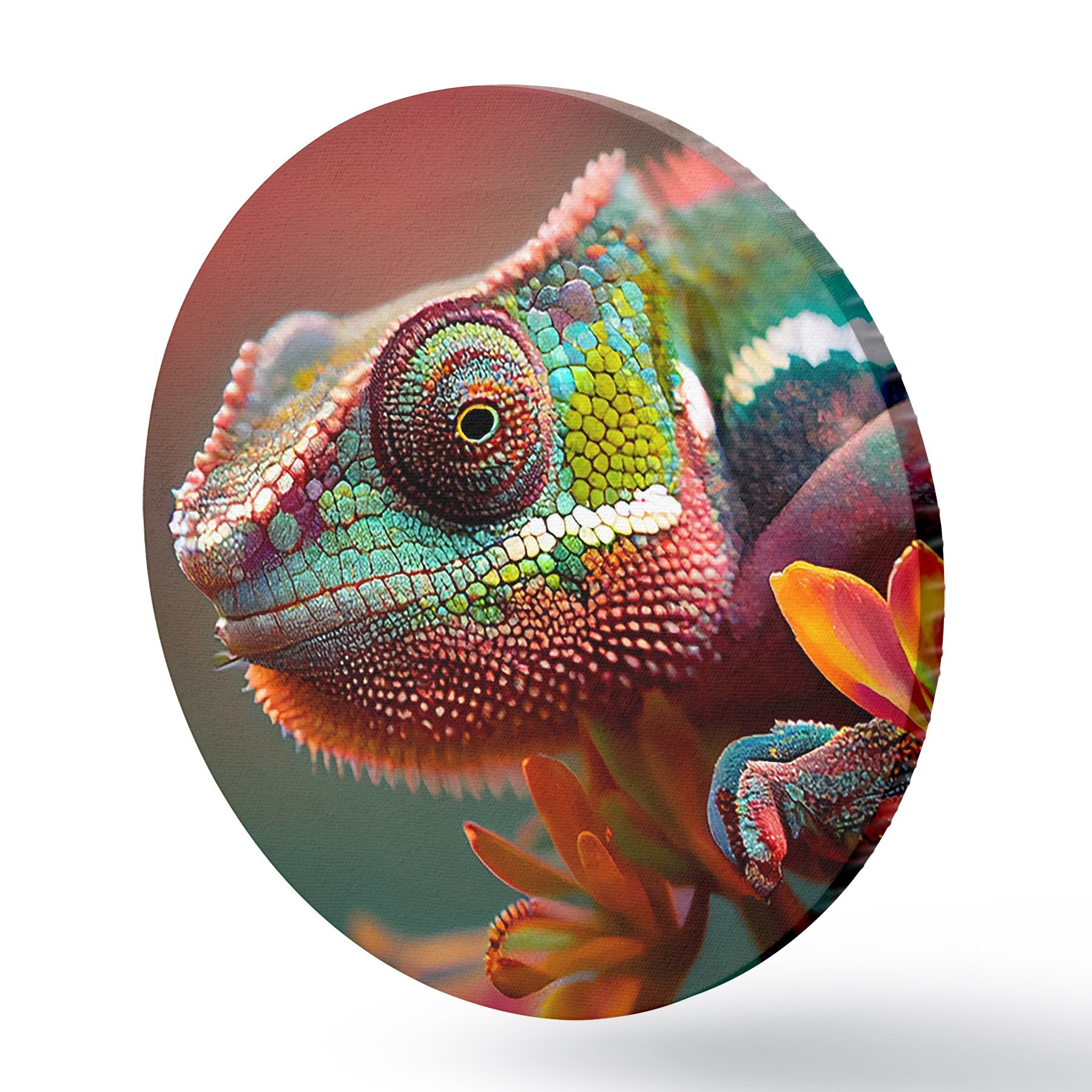 Runde Gemälde Chamäleon auf einer Blume r34927