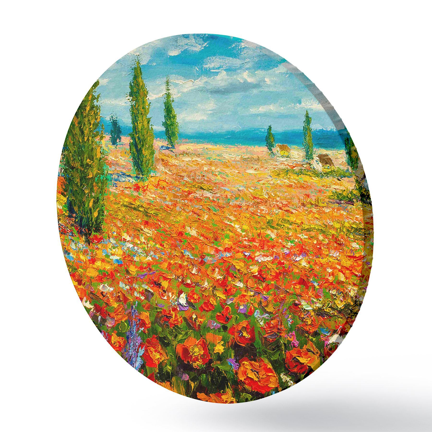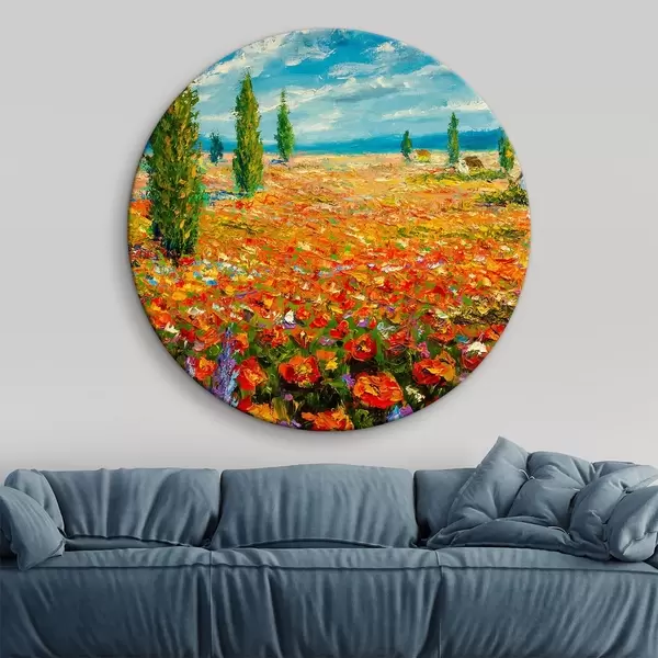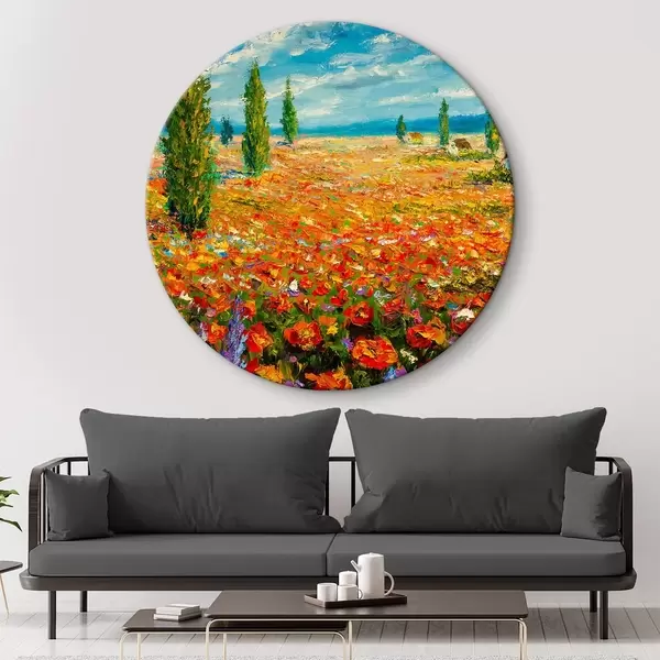 Runde Gemälde Mohnfeld gegen den blauen Himmel r34956