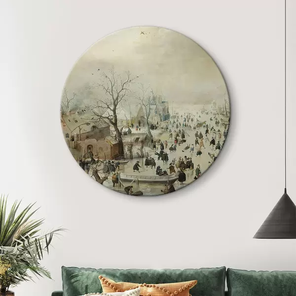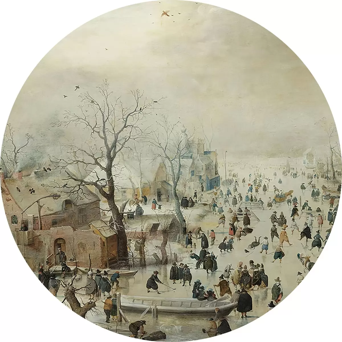 Runde Gemälde Winterlandschaft mit Schlittschuhläufern, Hendrik Averkamp, 1608 r35171
