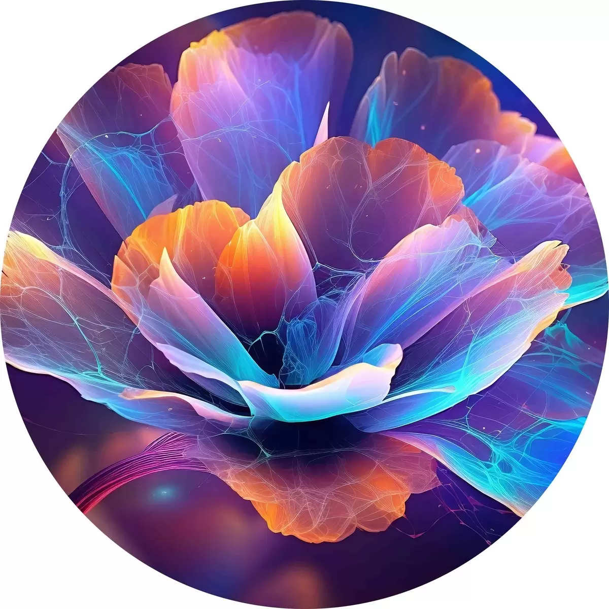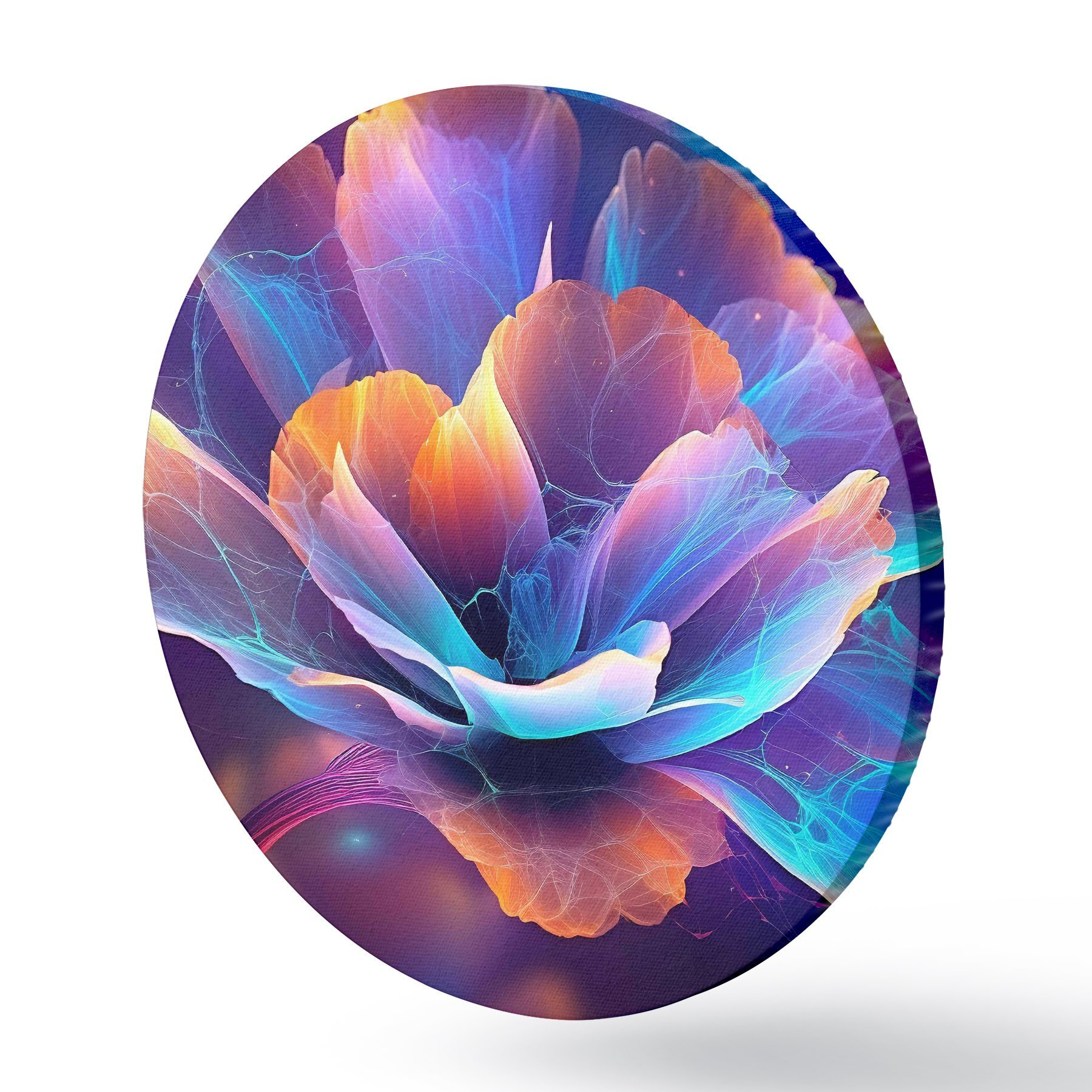 Runde Gemälde neonleuchtender Rahmen mit Blumen r35334