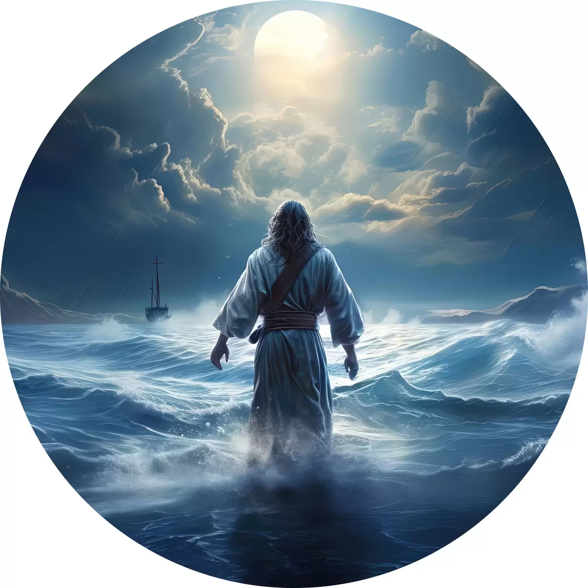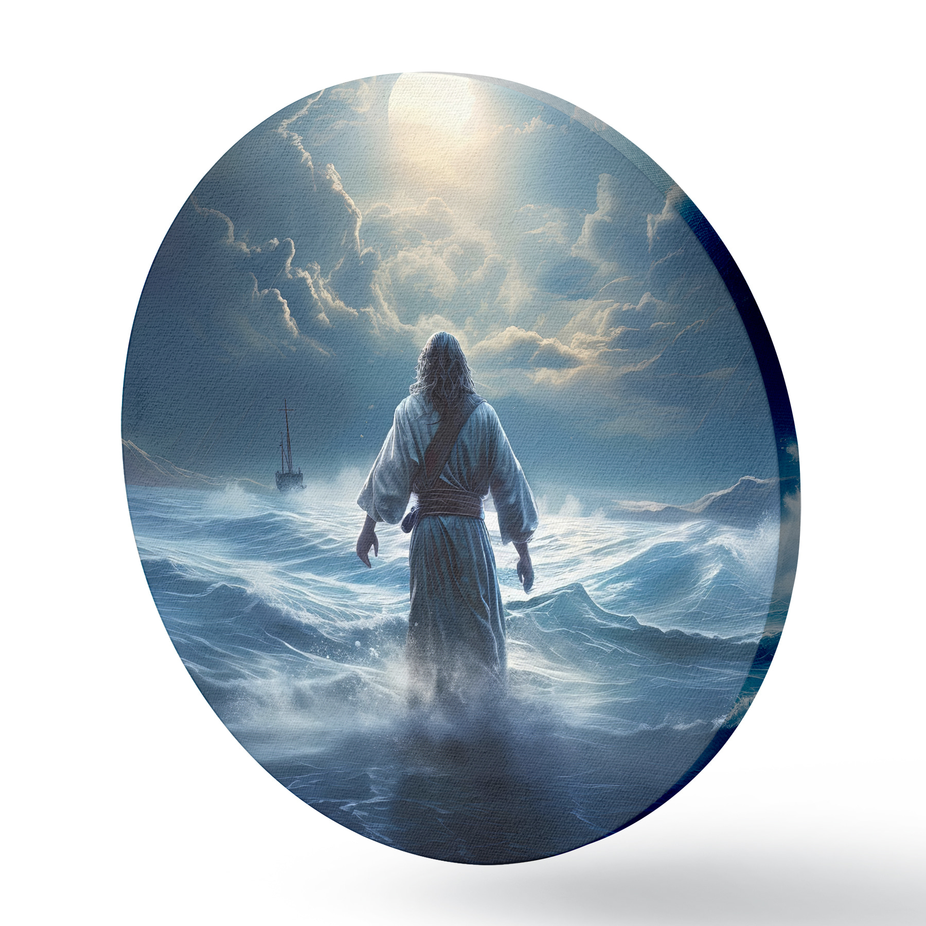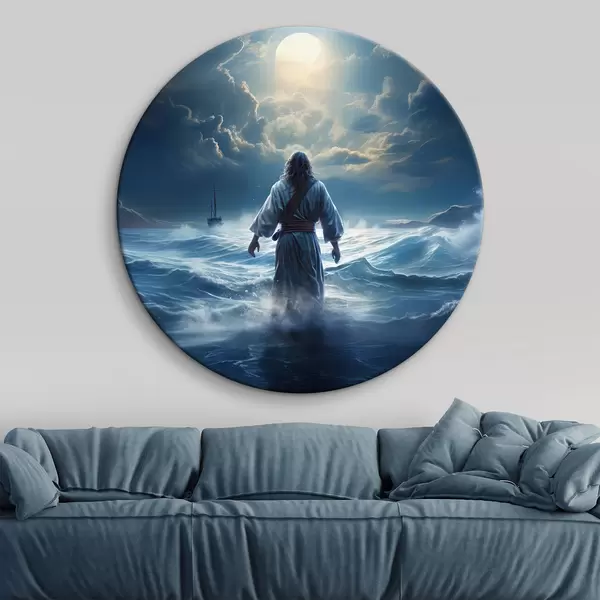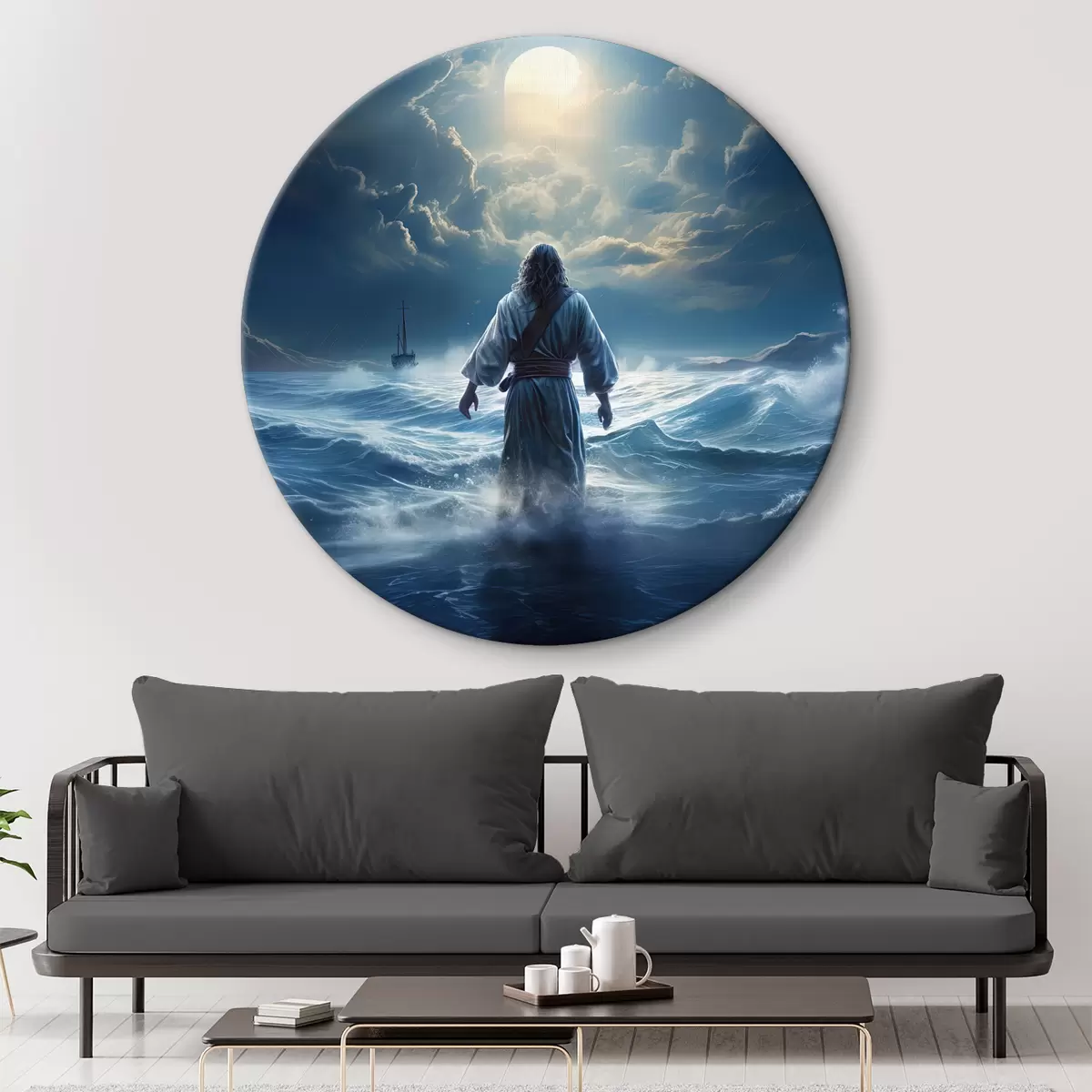 Runde Gemälde Ein Mann betrachtet den nächtlichen Vollmond r35357
