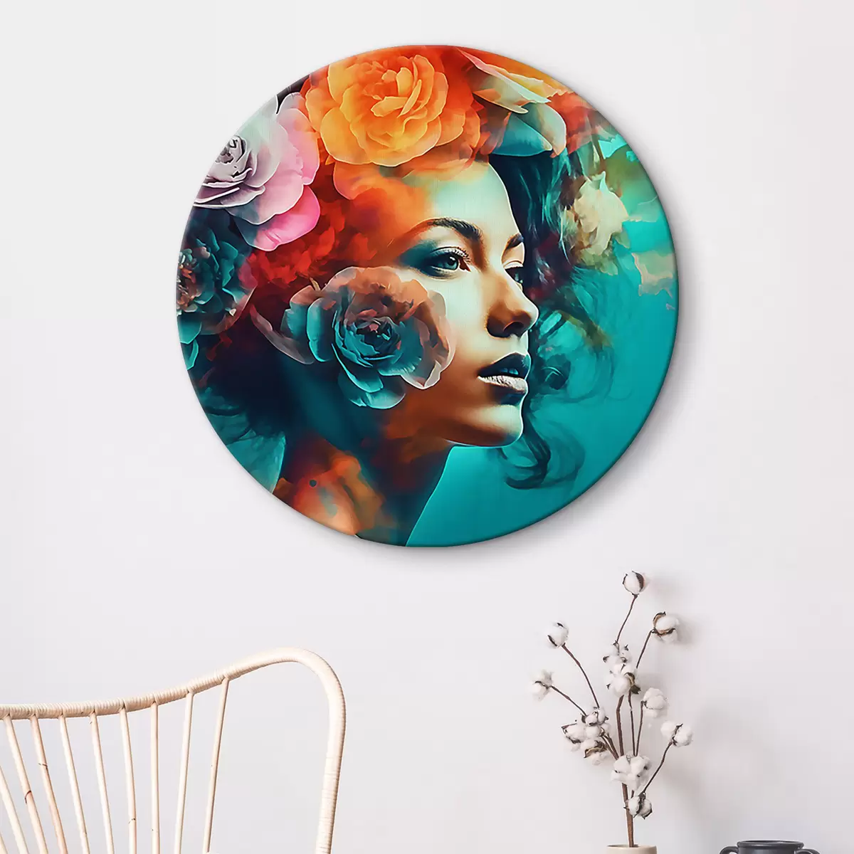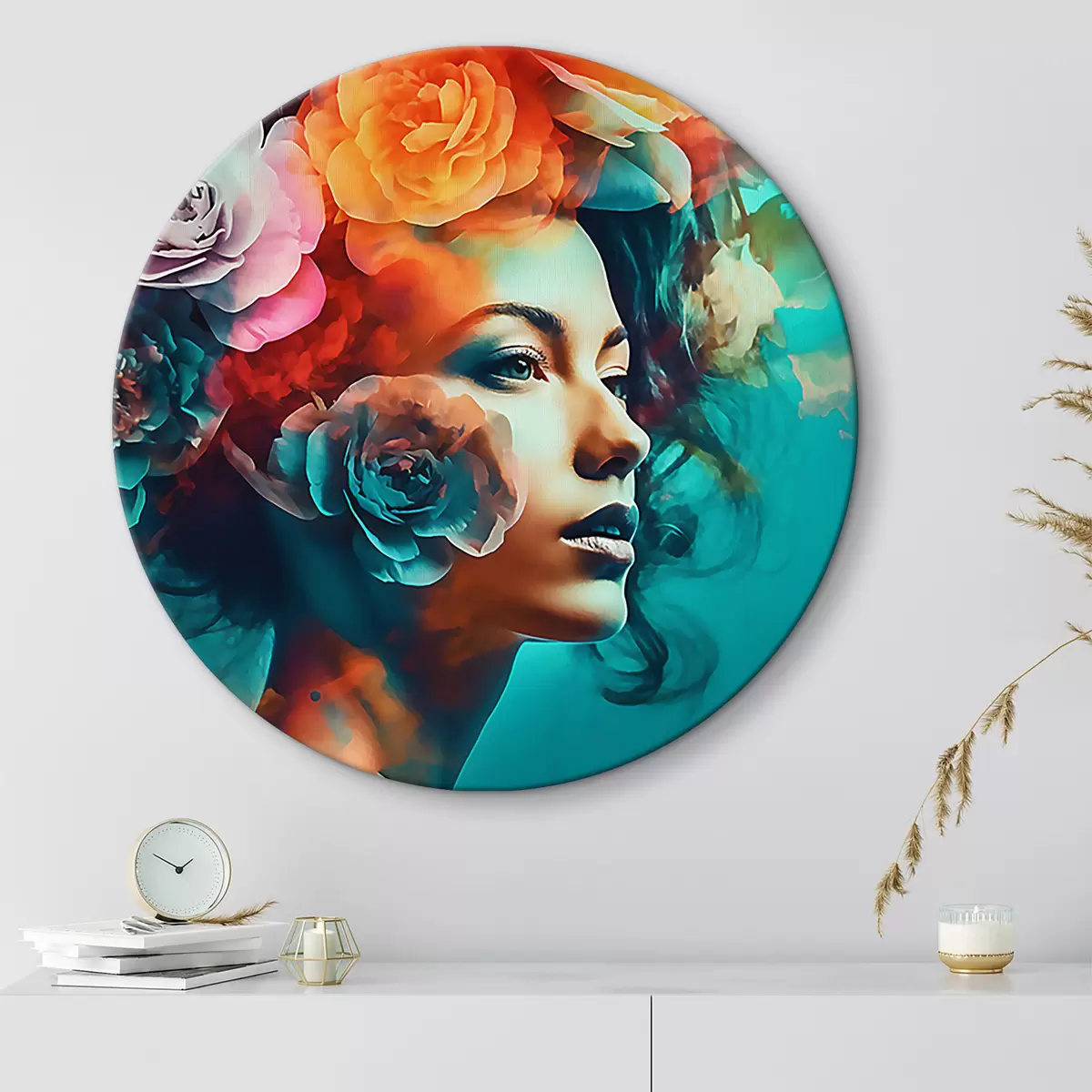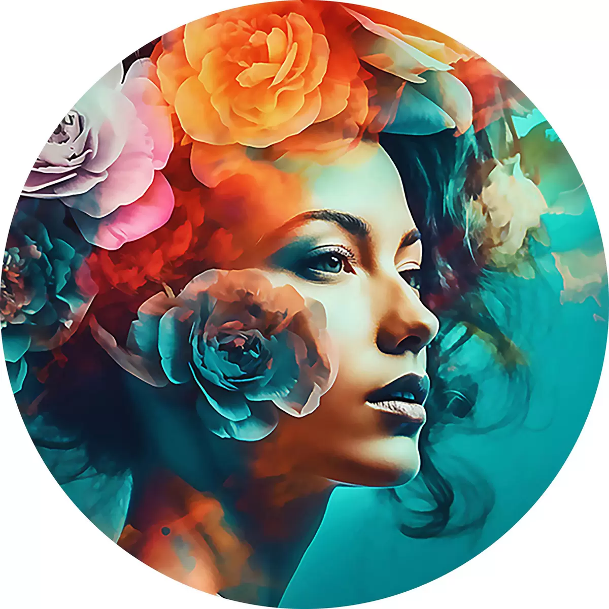 Runde Gemälde Hübsche Frau mit Blumen r35366