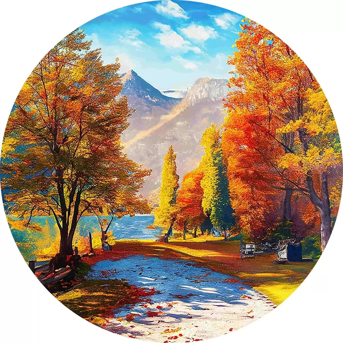 Runde Gemälde handgezeichneter Herbstwald r35375