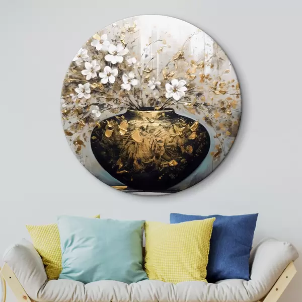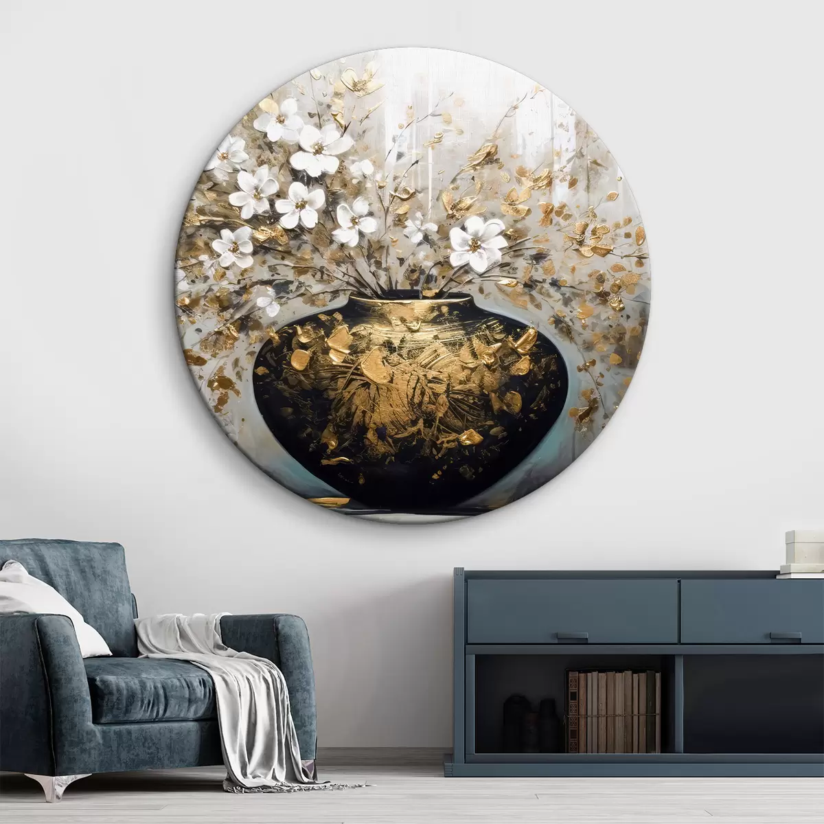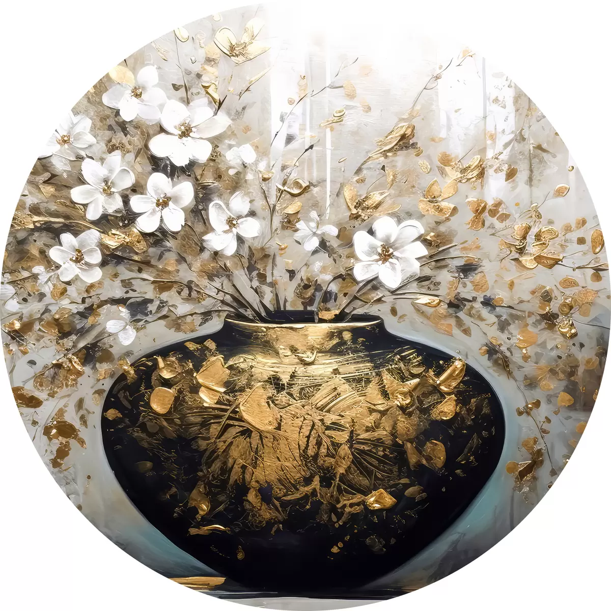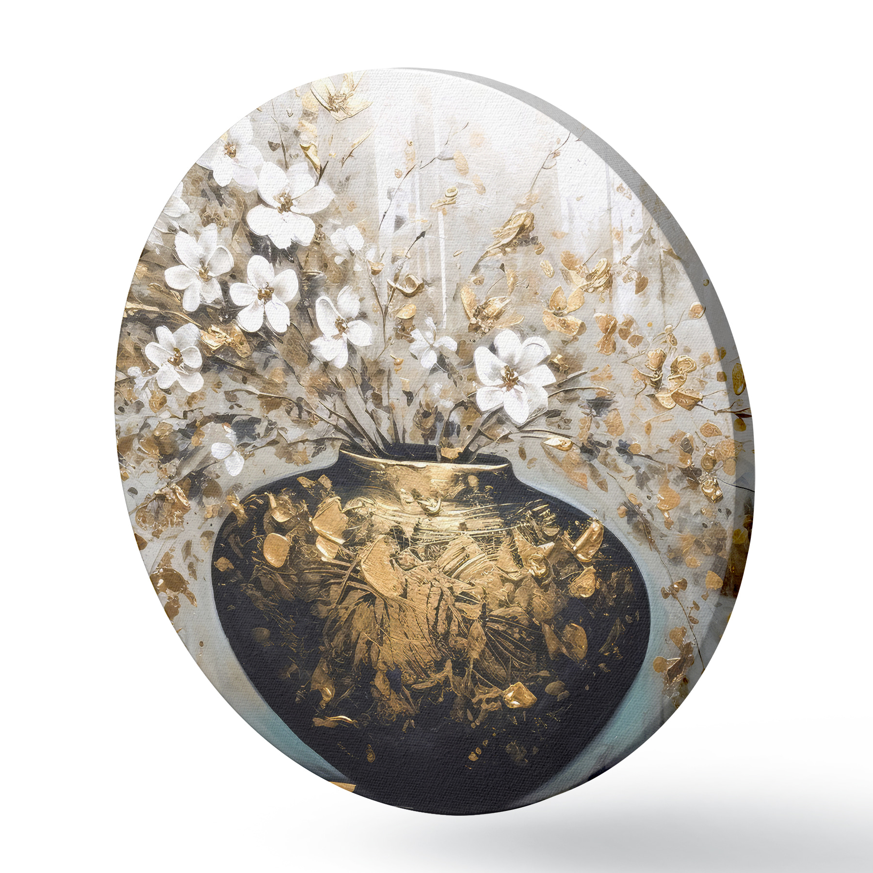 Runde Gemälde Große Vase mit kleinen Wildblumen r35377