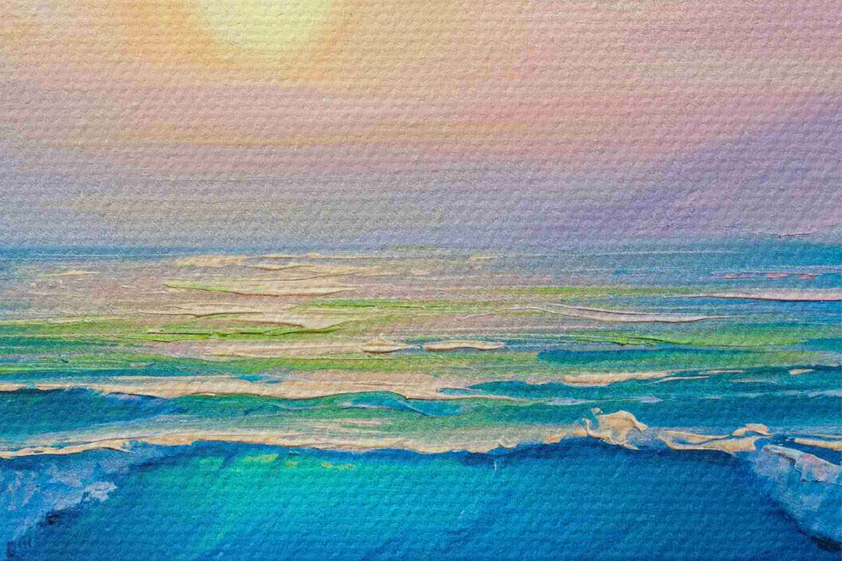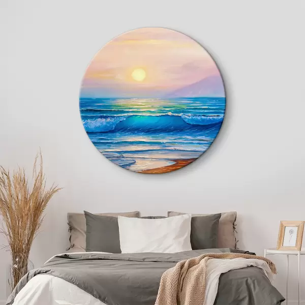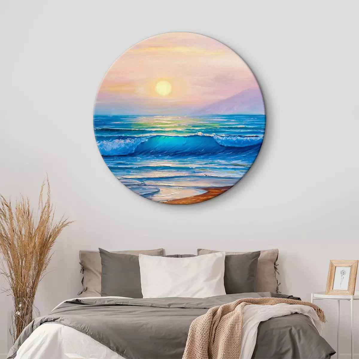 Runde Gemälde Rosa Sonnenuntergang vor dem Hintergrund des Meeres r35378