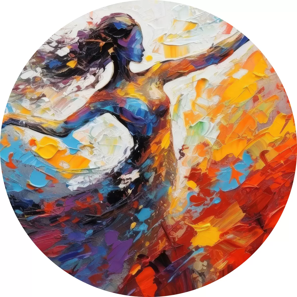 Runde Gemälde Eine strahlende Frau bei einem Tanz im Stil des Impressionismus r35379