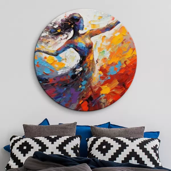 Runde Gemälde Eine strahlende Frau bei einem Tanz im Stil des Impressionismus r35379
