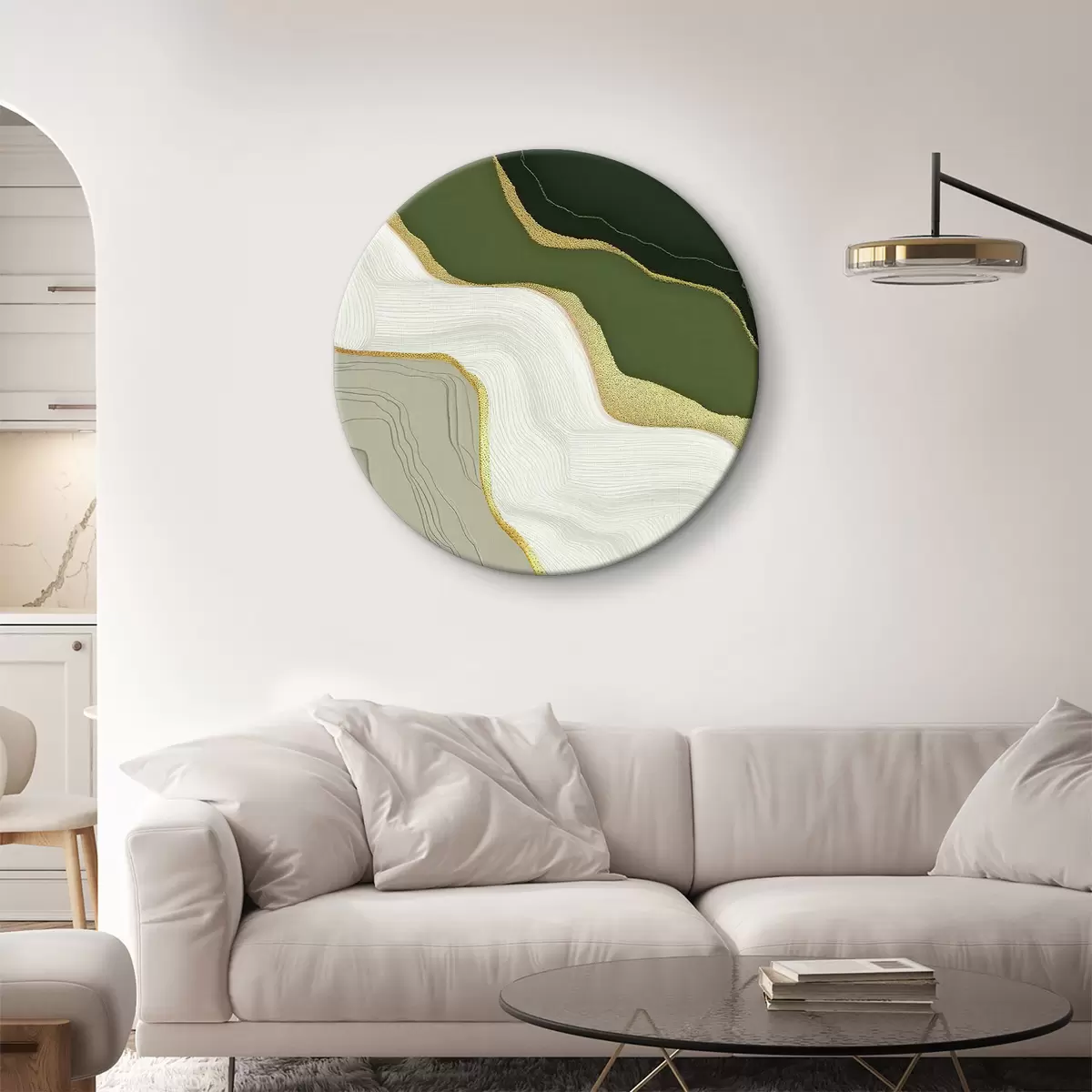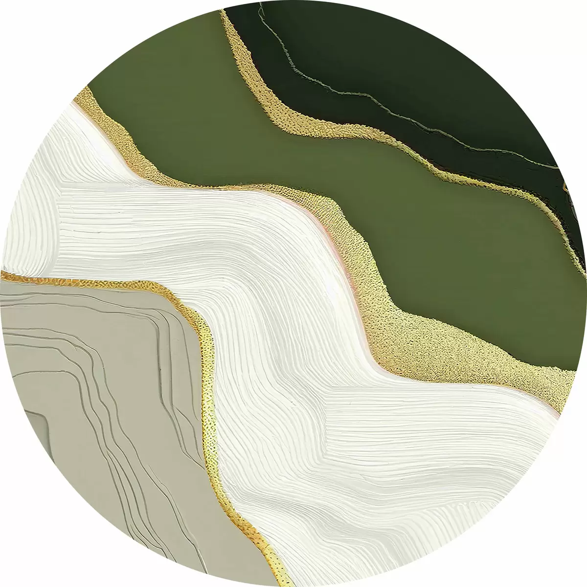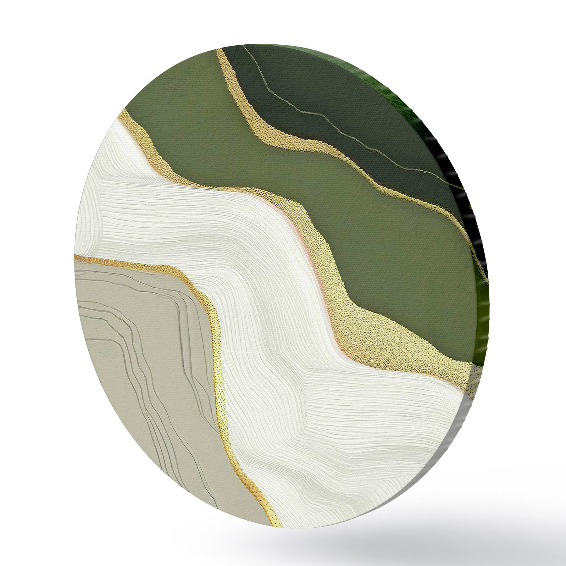 Runde Gemälde Ein abstraktes Ölgemälde mit schwarzen, weißen, grünen und grauen Farben r35427