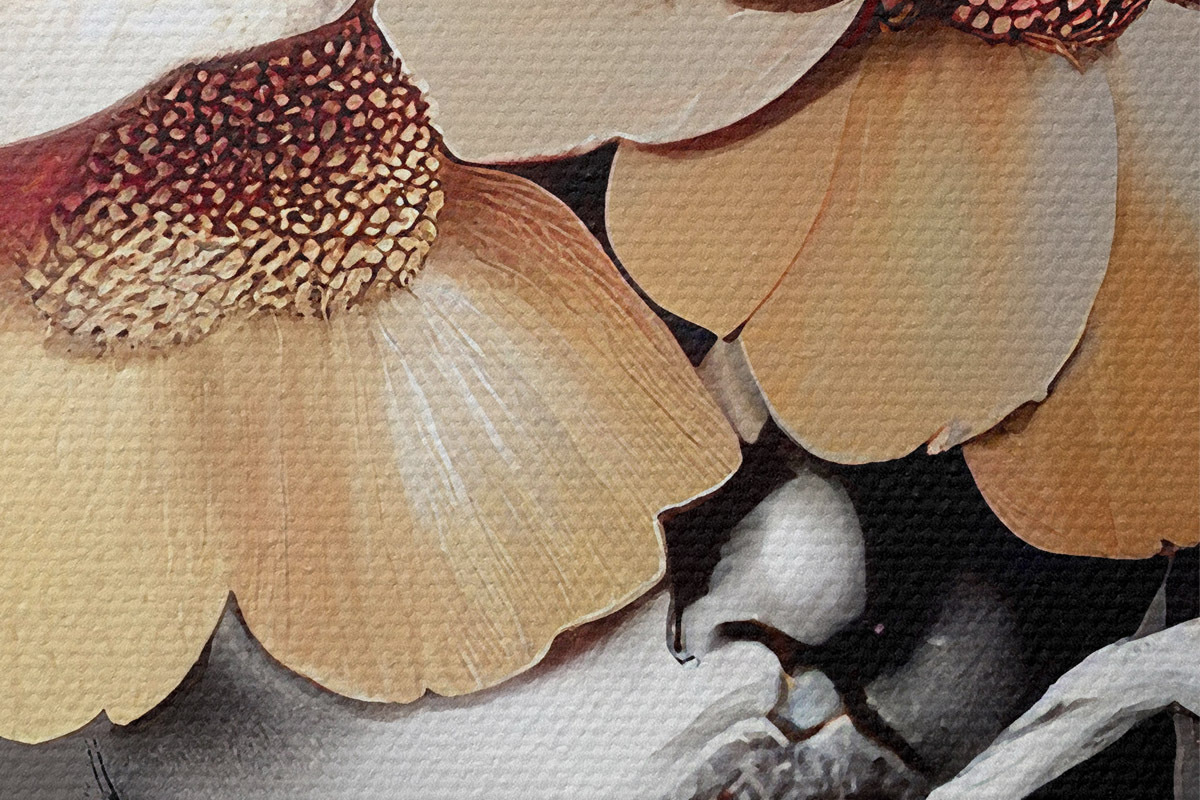 Drei Materialtypen stehen zur Verfügung: Economic Canvas - ein dichtes und haltbares Material für den Digitaldruck, identisch mit Malerleinwand, wasserfeste Oberfläche, realistische Wiedergabe von Details, mittelkörniges Material. Premium Canvas - die Textur ähnelt der einer Malerleinwand (verwobene kleine Fäden). Weiche, detaillierte Wiedergabe des Bildes auf einer matten Oberfläche. Eco-Premium - hochwertiges Gewebe aus 100% Baumwolle. Dank der natürlichen Baumwollfasern ist das Material langlebig und verschleißfest. Hervorragende Farbwiedergabe und Detailtreue.