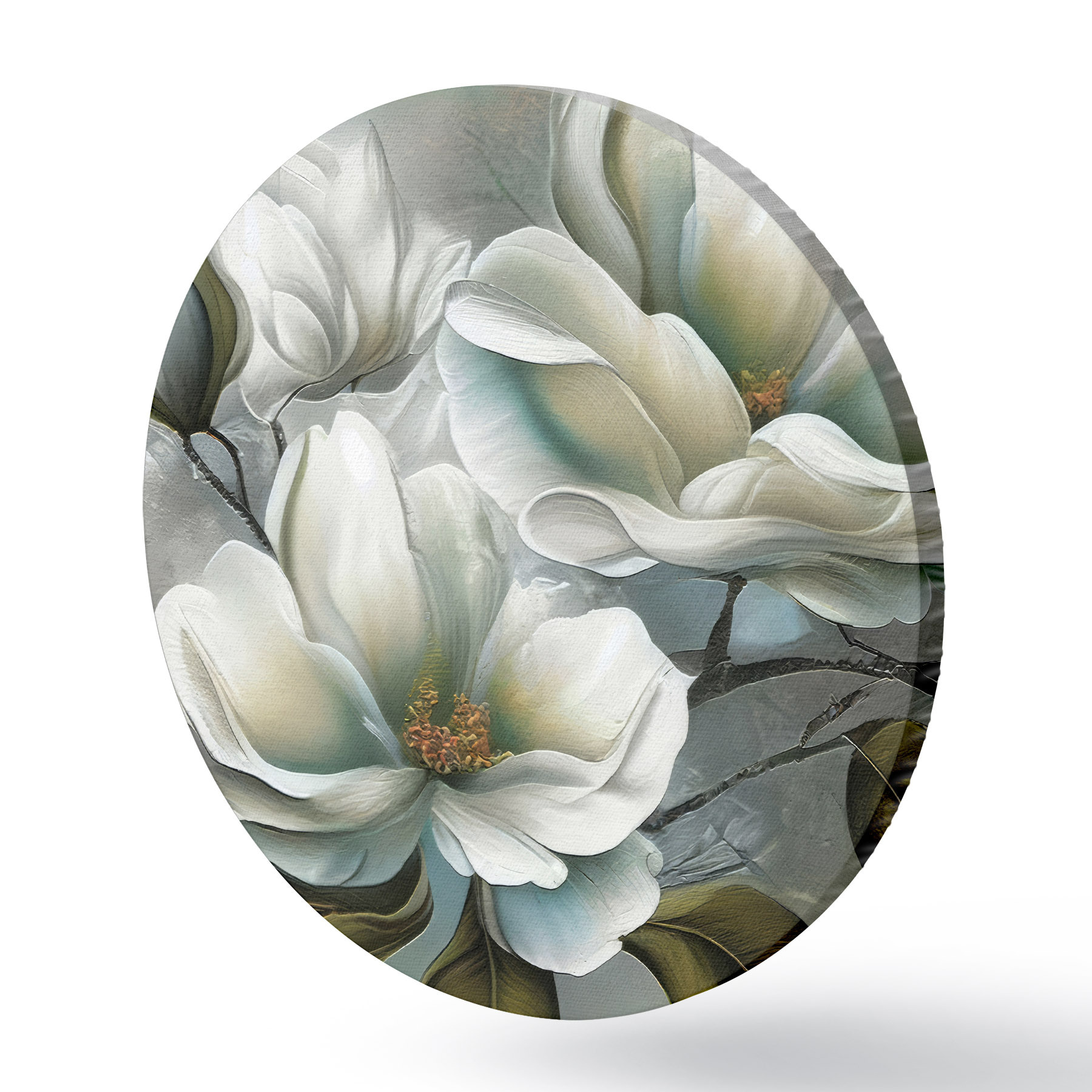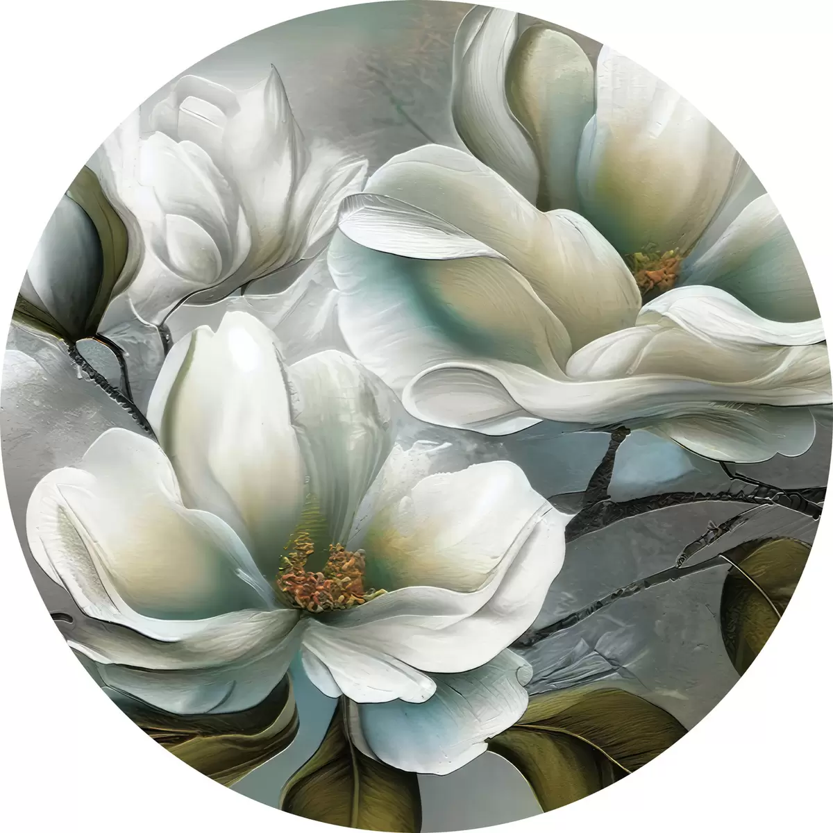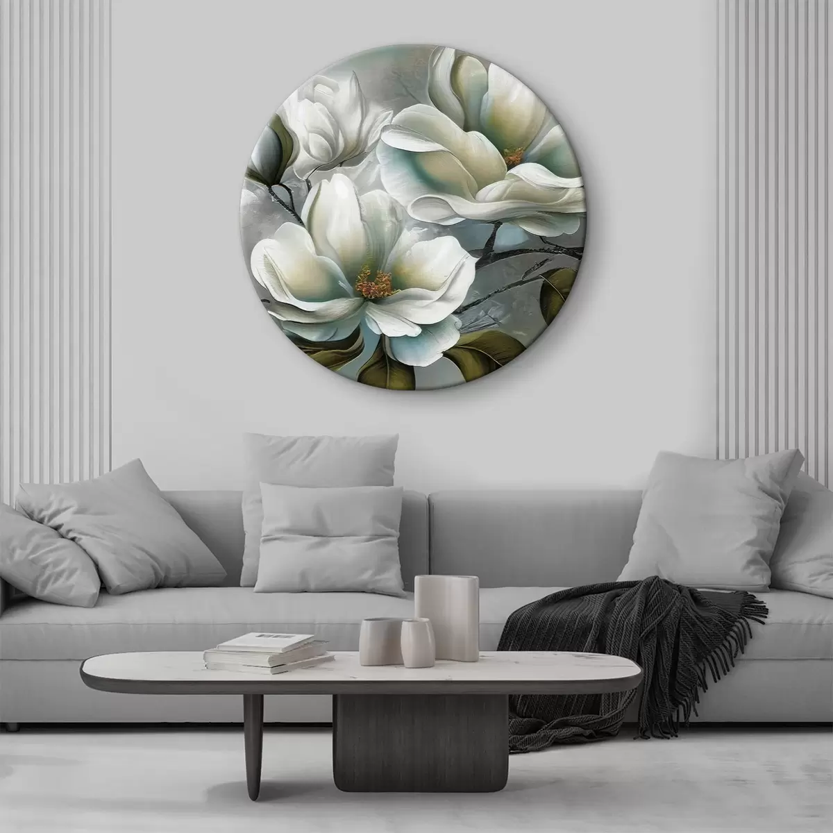 Runde Gemälde Weiße Blumen auf blauem Hintergrund r35494
