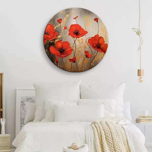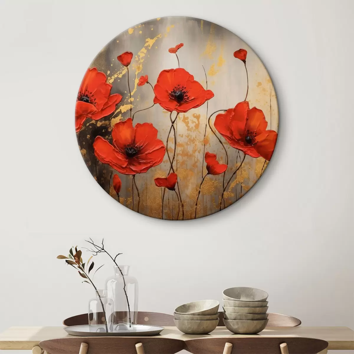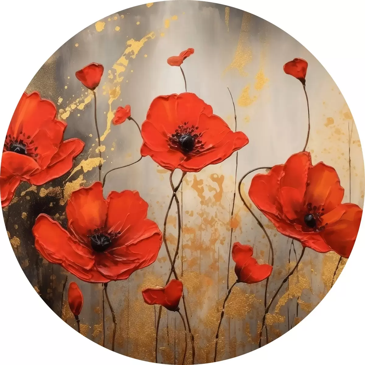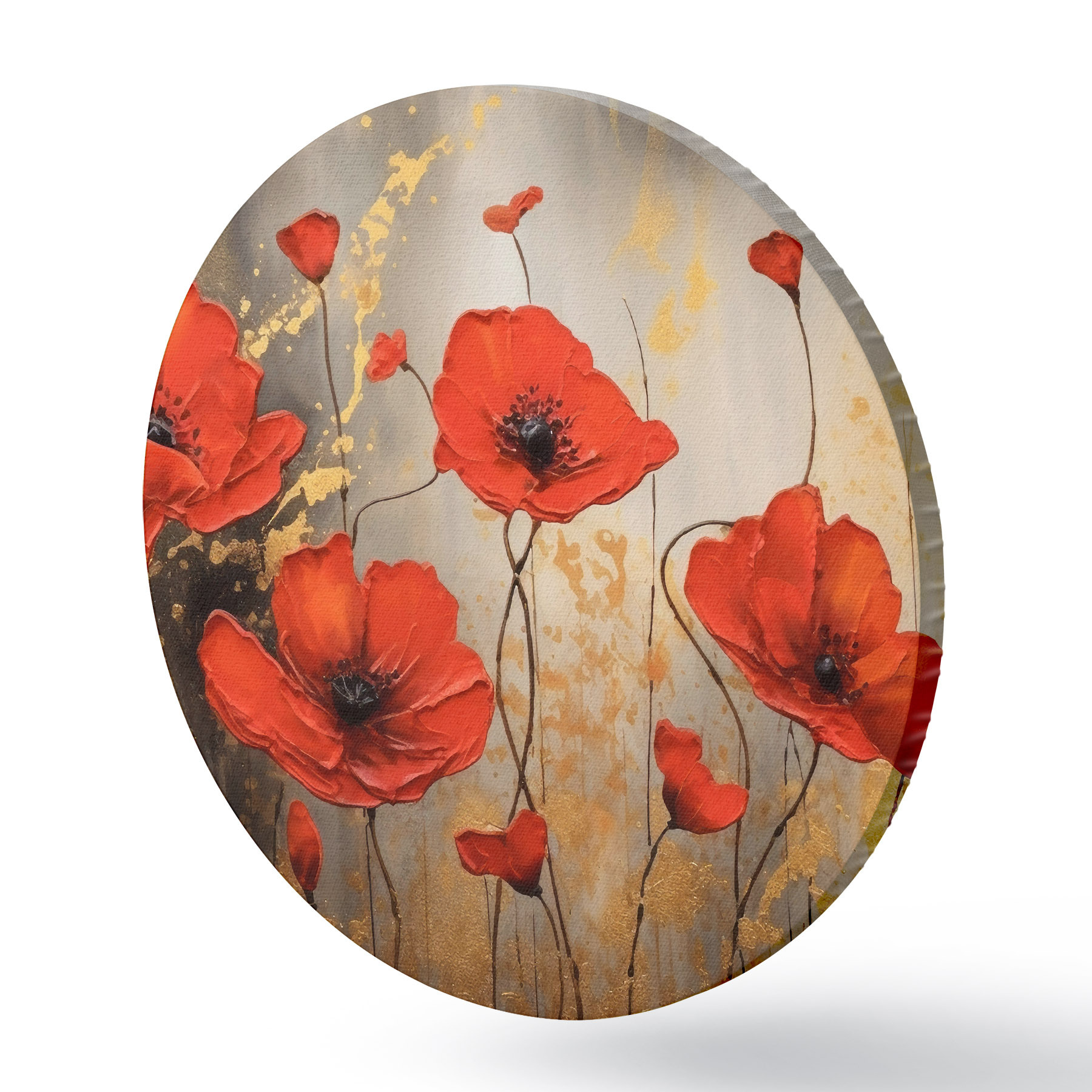 Runde Gemälde Mohnblumen auf einem braunen abstrakten Hintergrund r35515