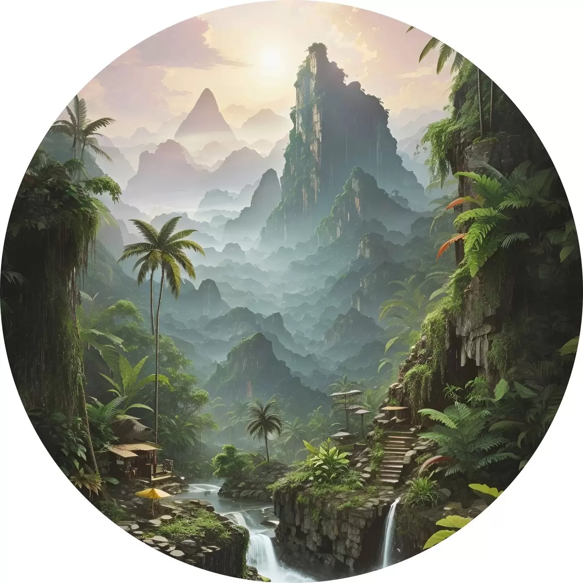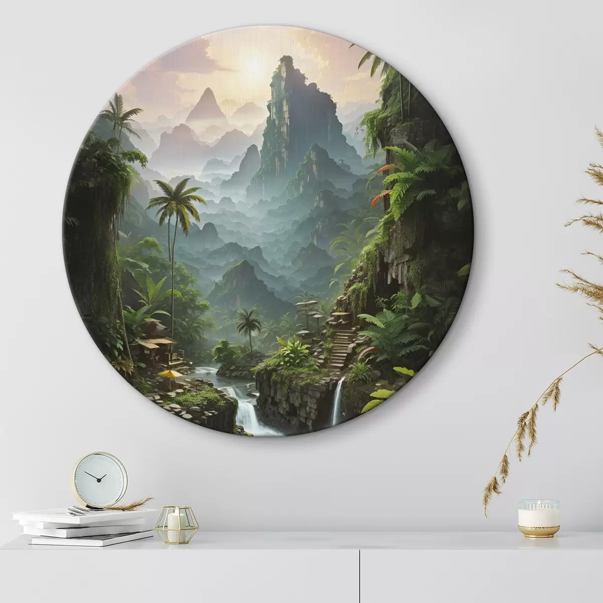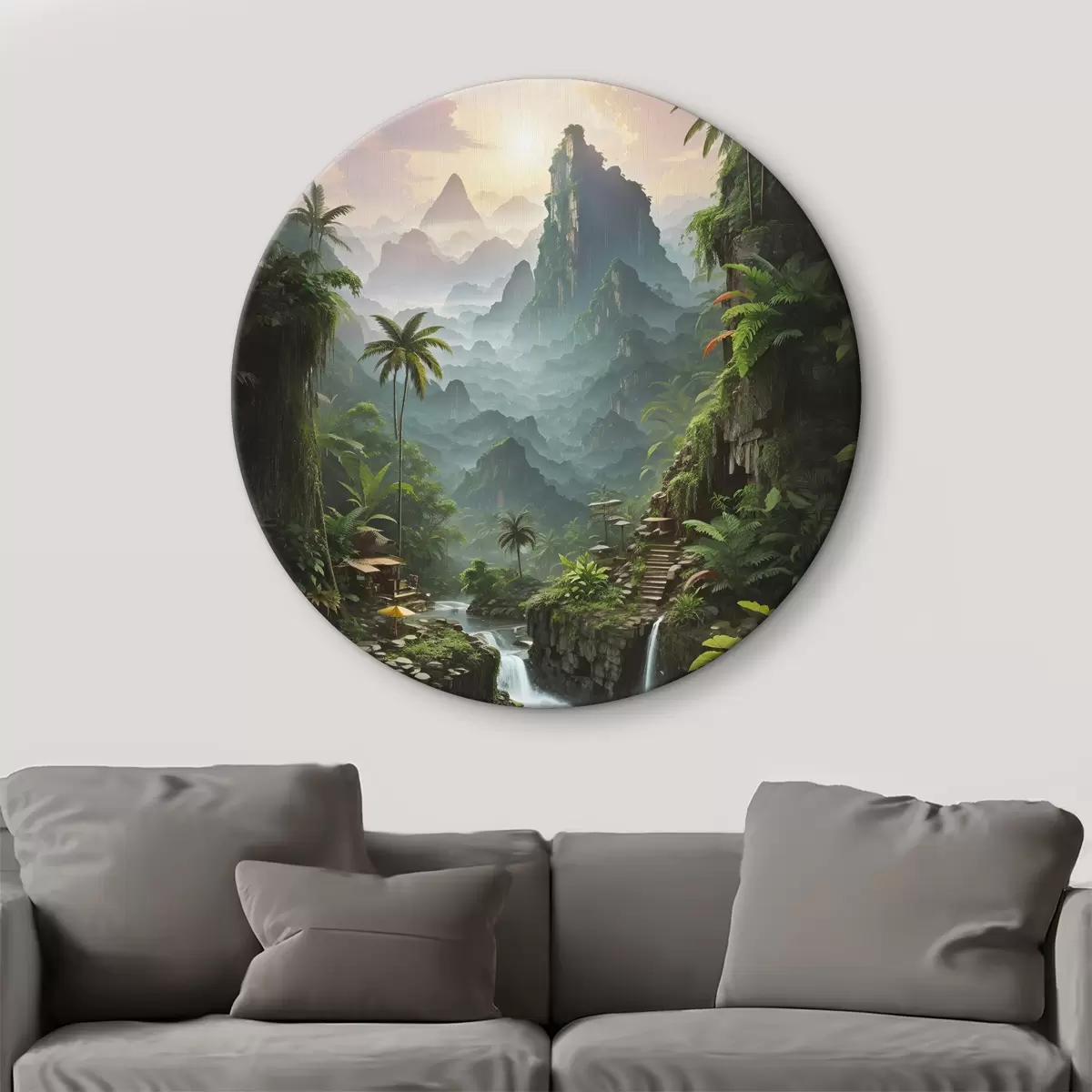 Runde Gemälde Blick auf die asiatische Berglandschaft r35648