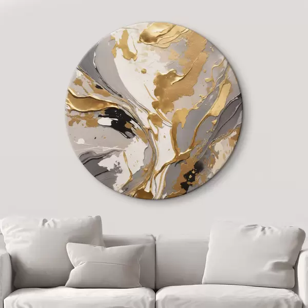 Runde Gemälde Abstrakte fließende Bewegung mit metallischen Akzenten r35656