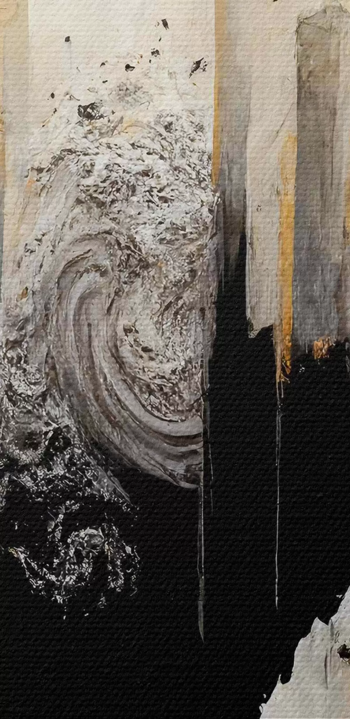Runde Gemälde Unscharfes Bild mit weißer und schwarzer Farbe r35735