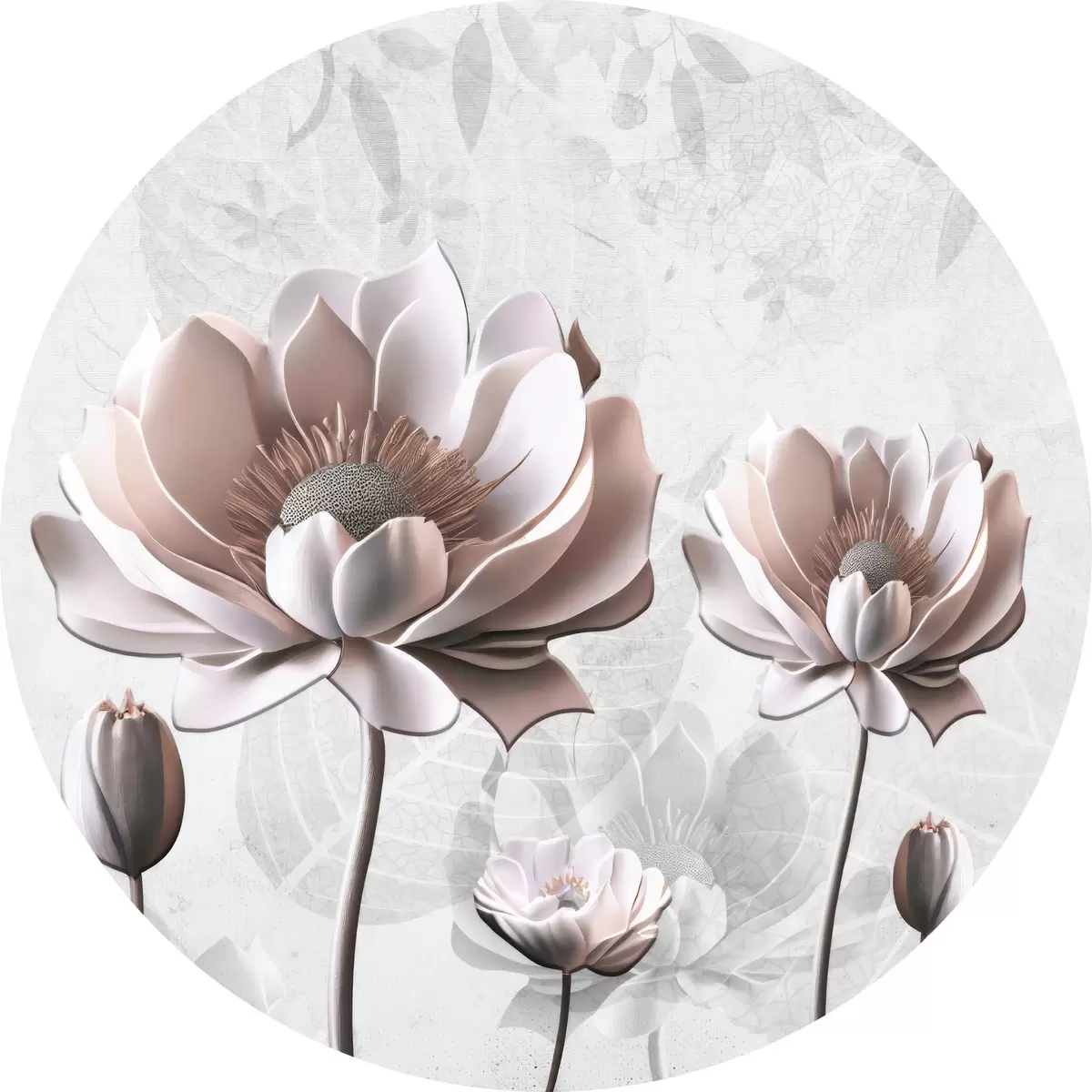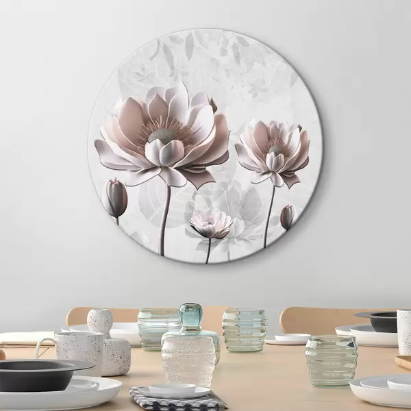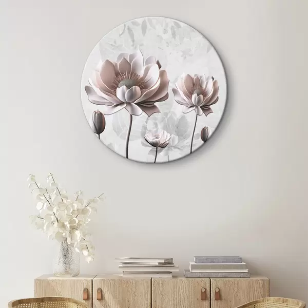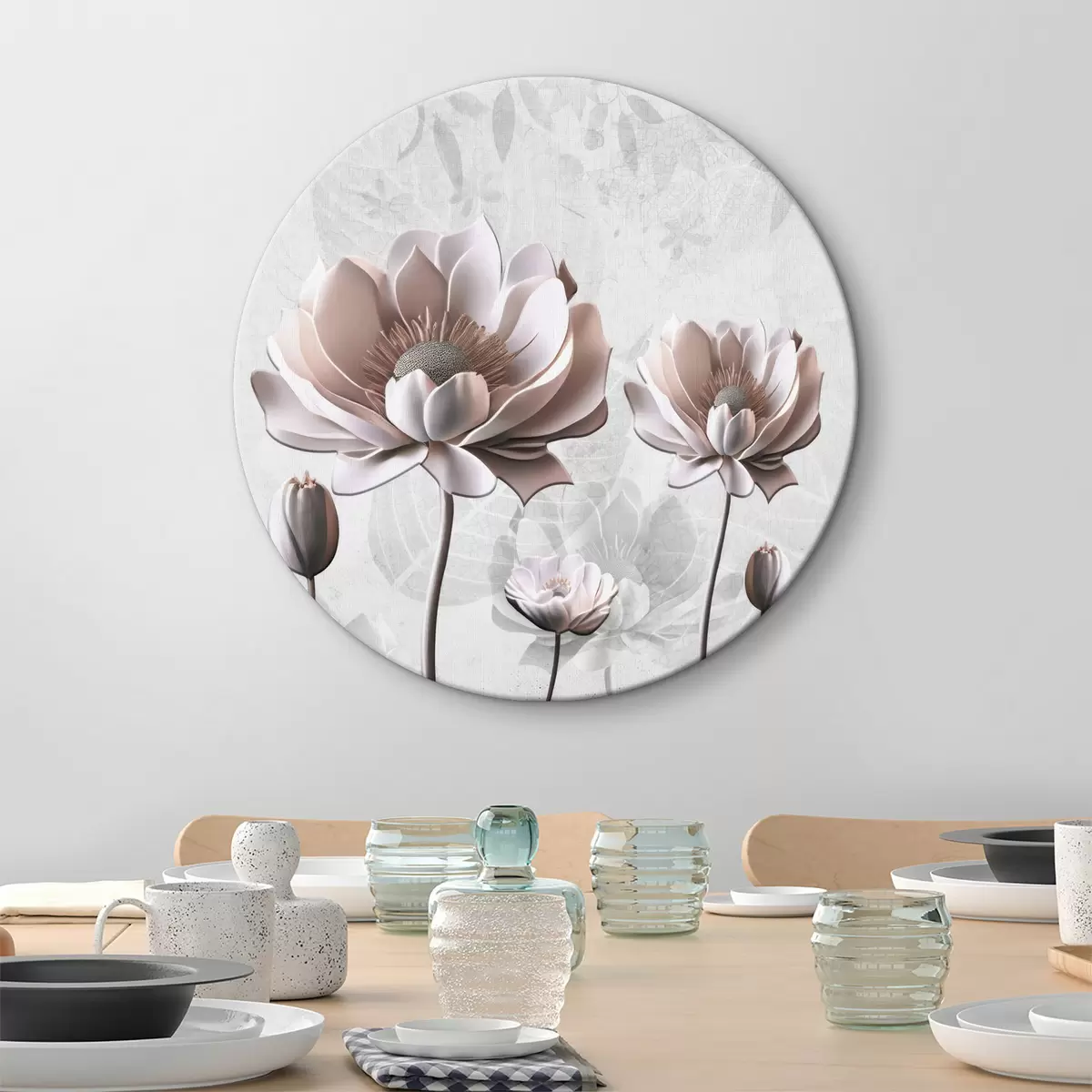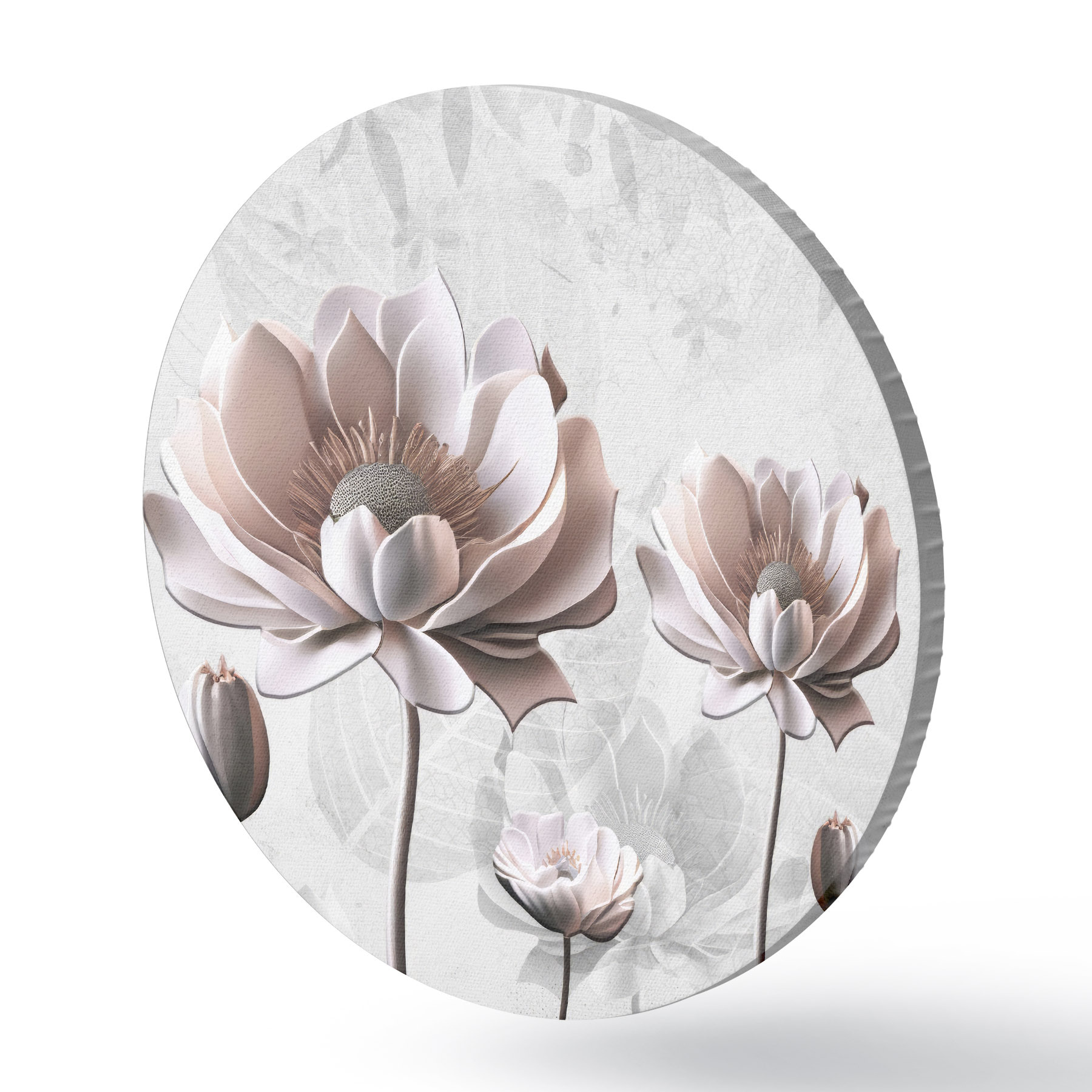 Runde Gemälde Weiße Blumen auf weißem Hintergrund r35736