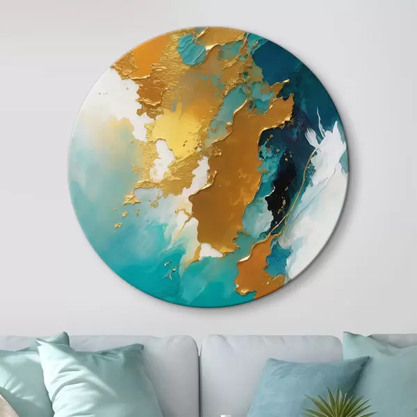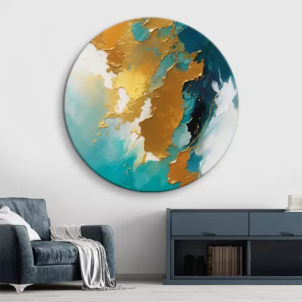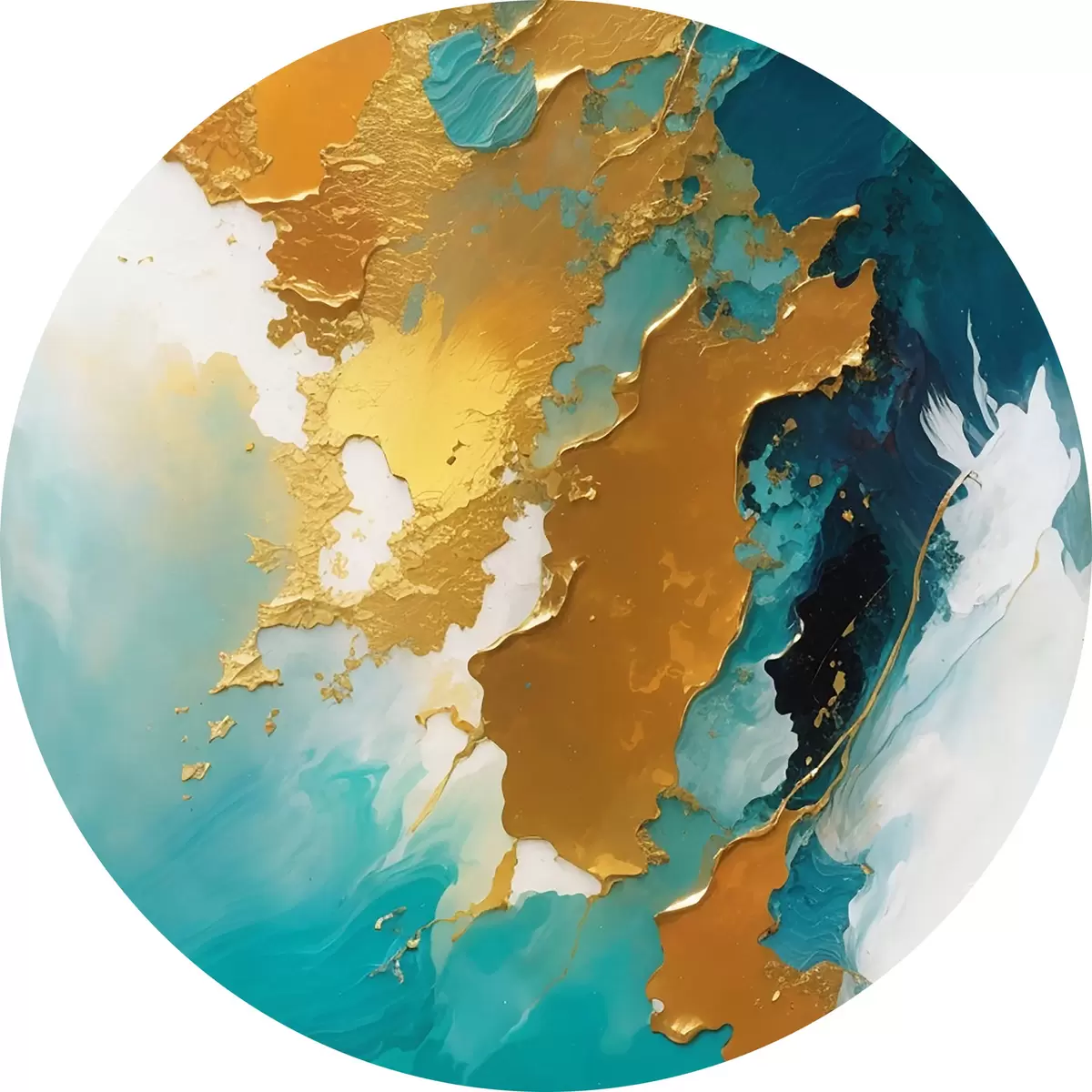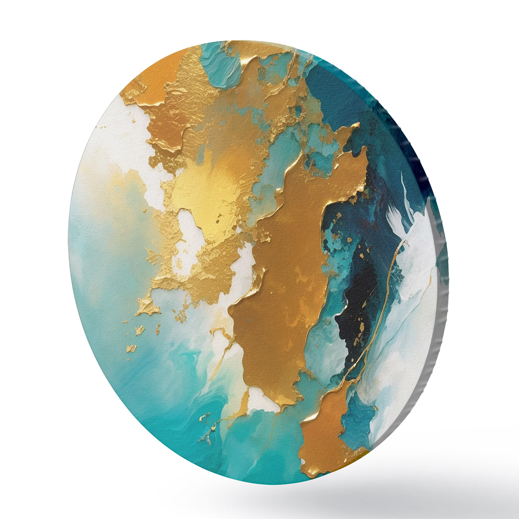 Runde Gemälde Teal und Bernstein abstrakte flüssige Zusammensetzung r35823