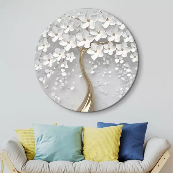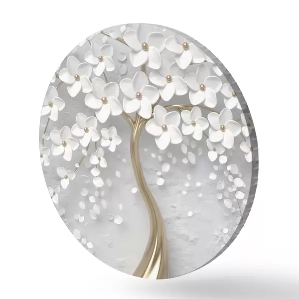 Runde Gemälde Voluminöser Baum mit vielen weißen Blüten r35856