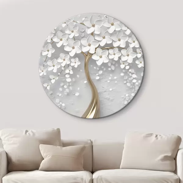 Runde Gemälde Voluminöser Baum mit vielen weißen Blüten r35856