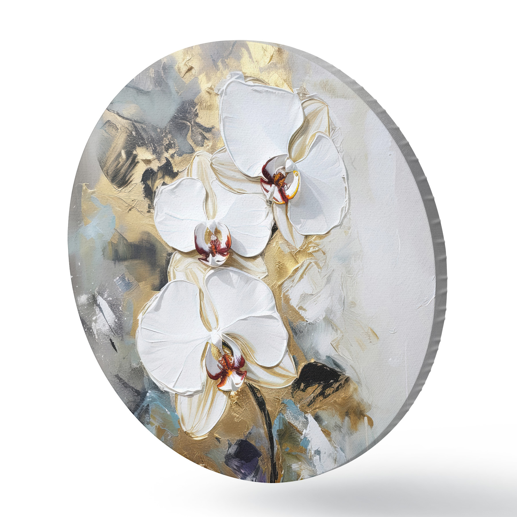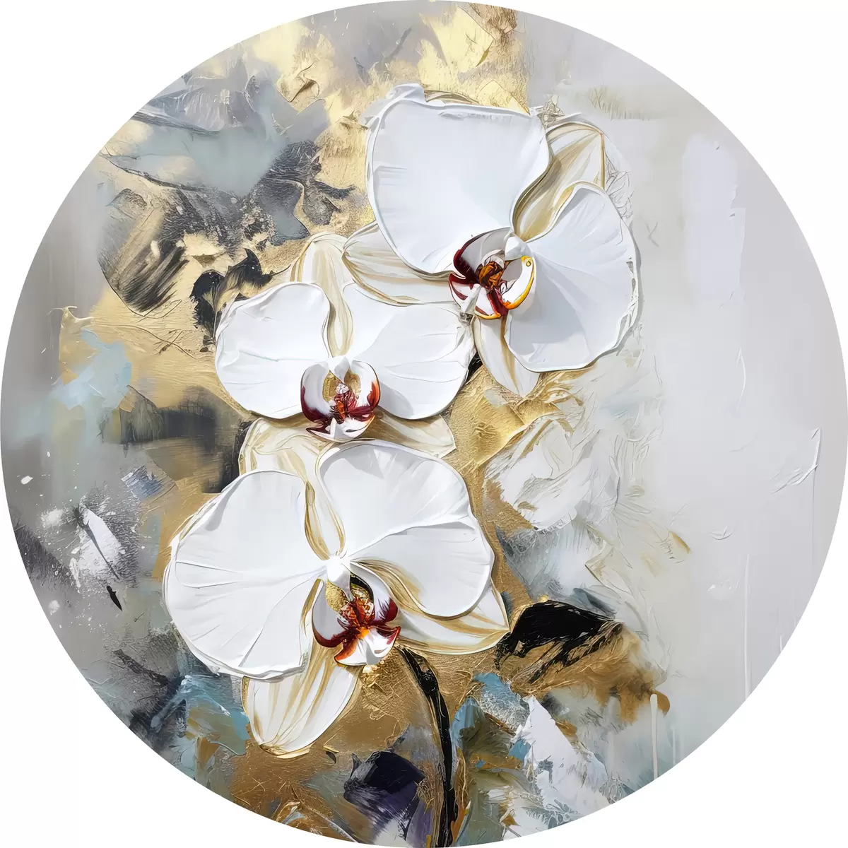 Runde Gemälde Orchideen-Symphonie mit abstrakten Pinselstrichen r35904