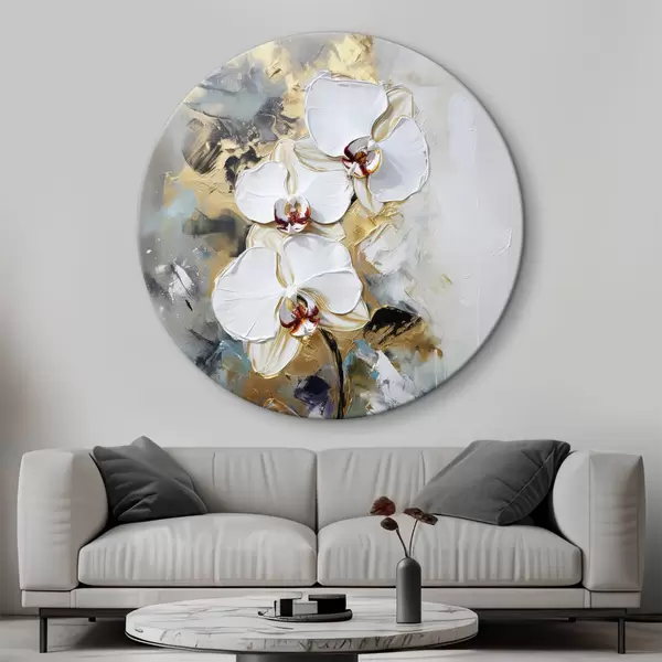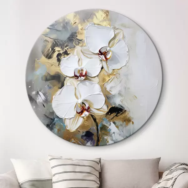 Runde Gemälde Orchideen-Symphonie mit abstrakten Pinselstrichen r35904