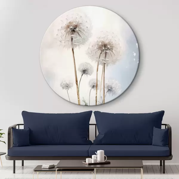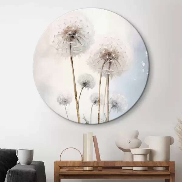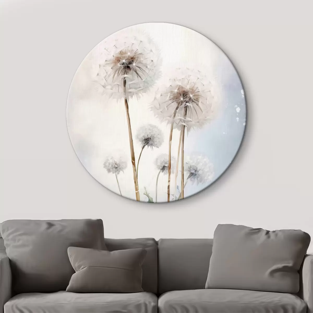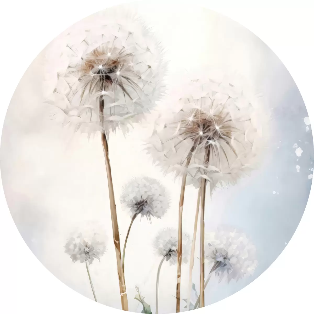 Runde Gemälde Löwenzahnträume in zarten Pastelltönen r35907