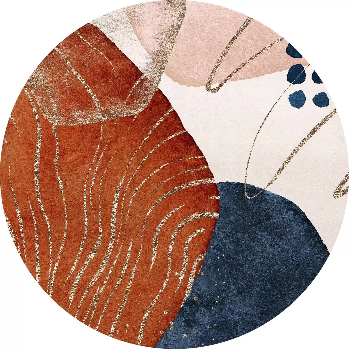 Runde Gemälde Kosmische Schichten: Tiefblau und erdige Akzente r35956