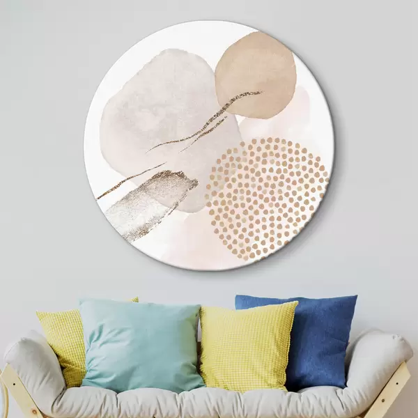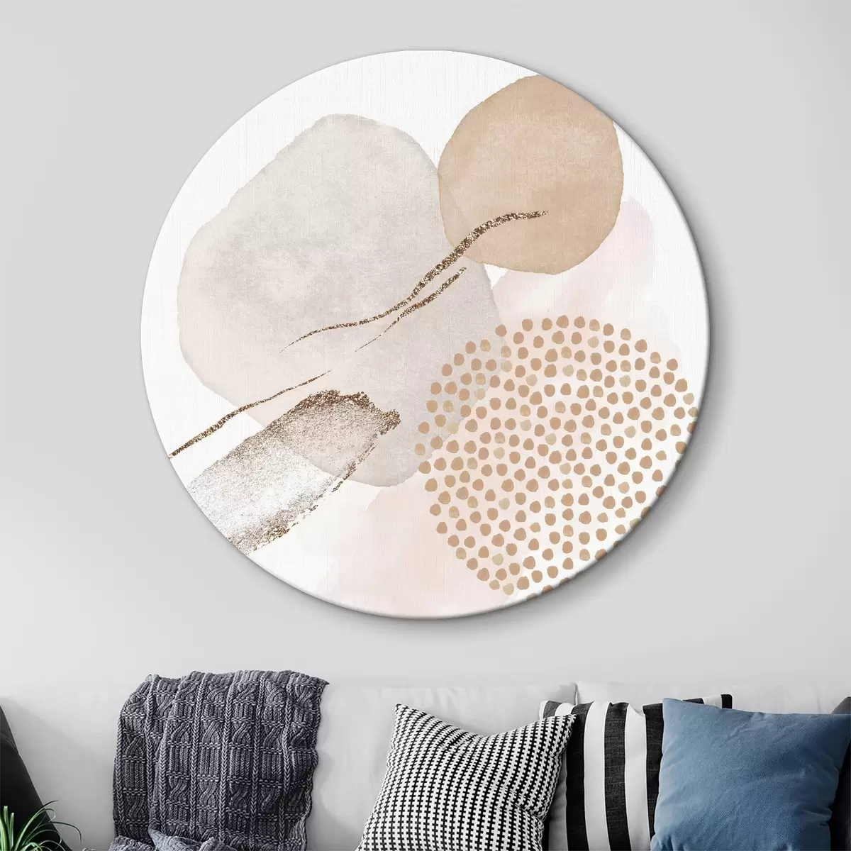 Runde Gemälde Neutraler Abstrakt mit gepunkteten Akzenten r35990