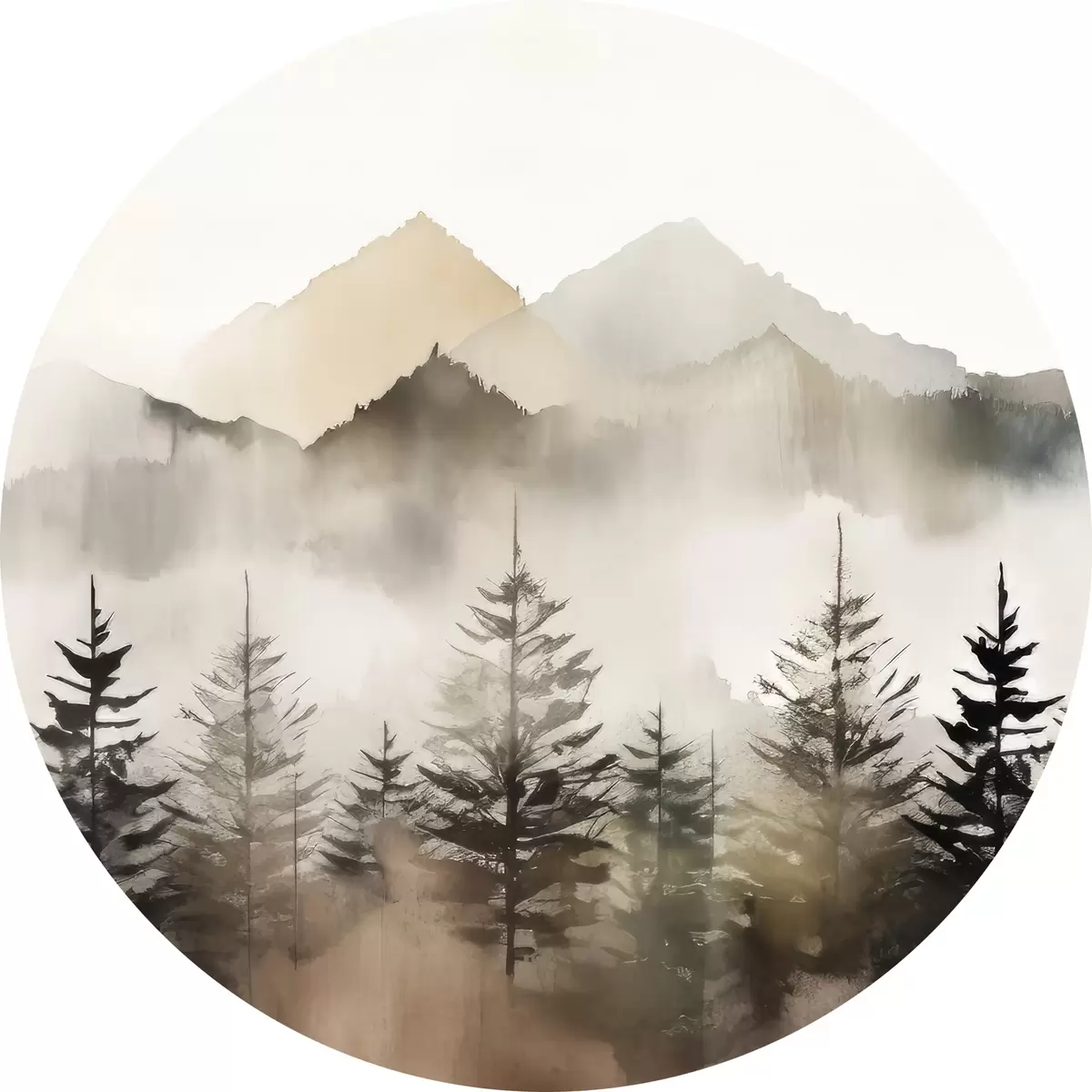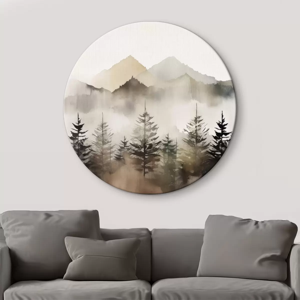 Runde Gemälde Herbstliche Waldlandschaft r36009