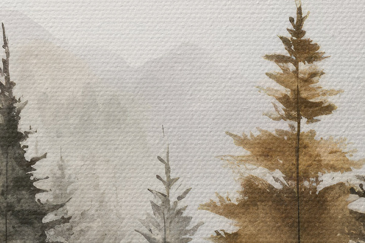 Bild Aquarell Tannenbäume auf dem Hintergrund der Berge Nr r36010