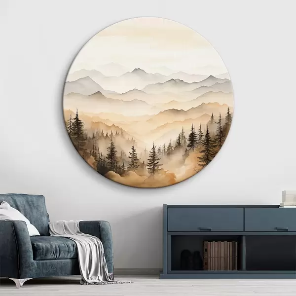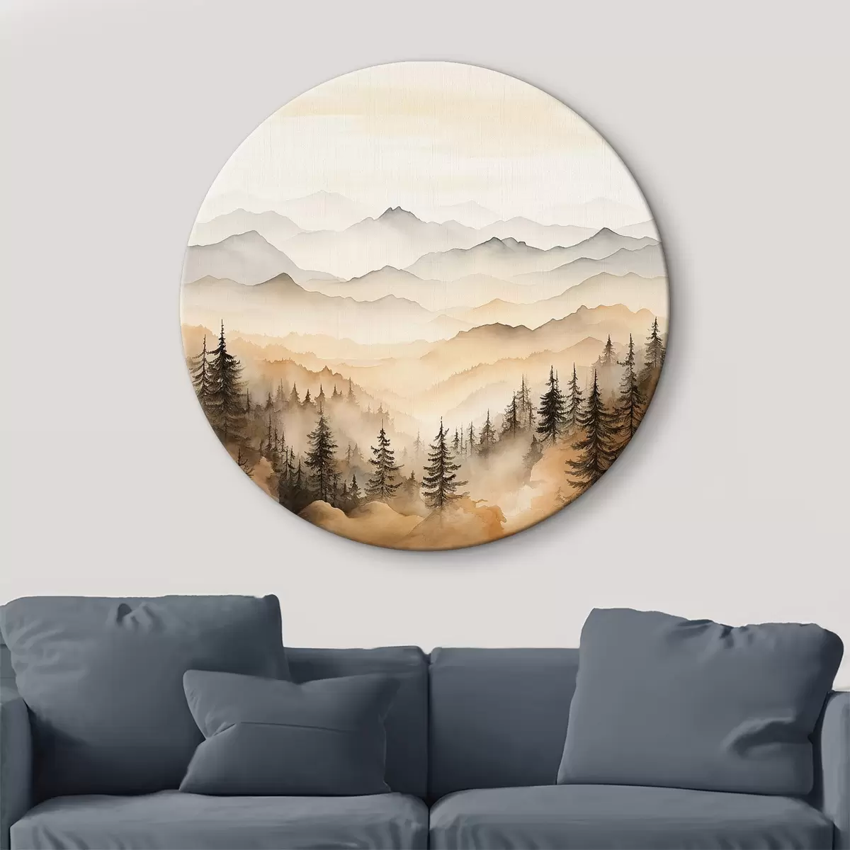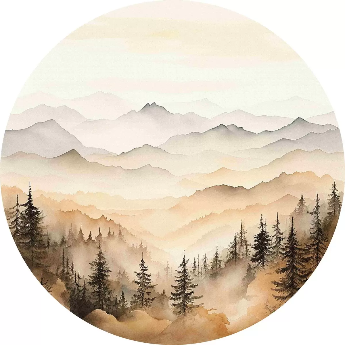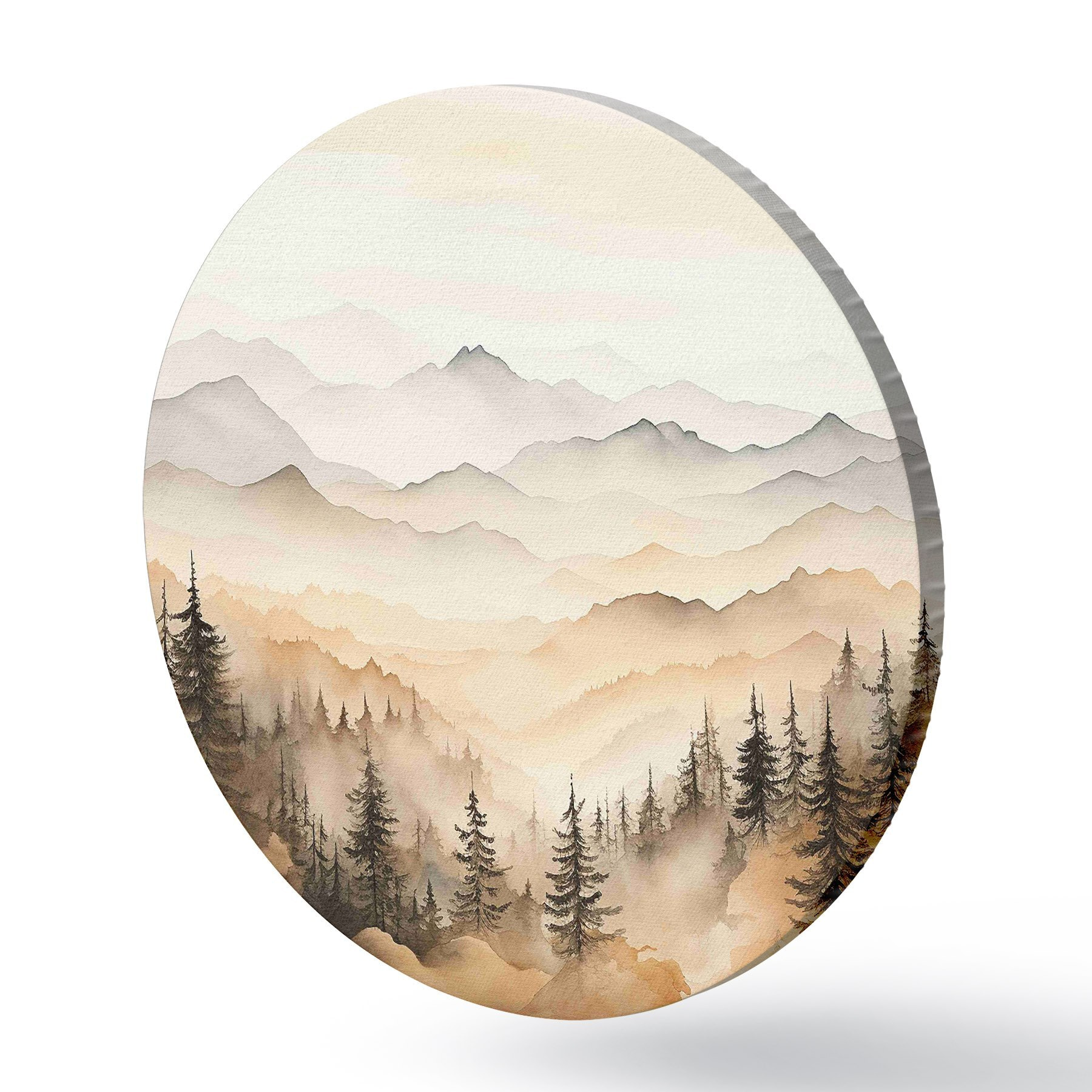 Runde Gemälde Verschiedene Aquarellberge in Beigetönen r36015