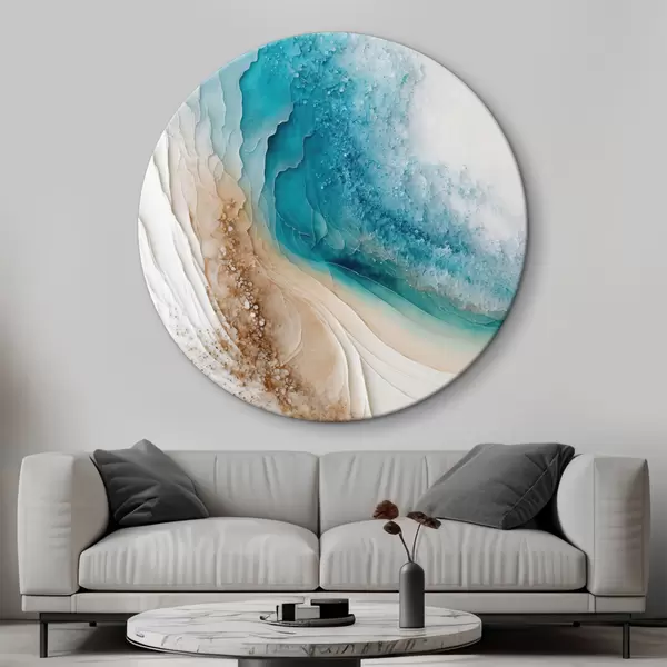 Runde Gemälde Türkisfarbene und weiße fließende Kunst r36029