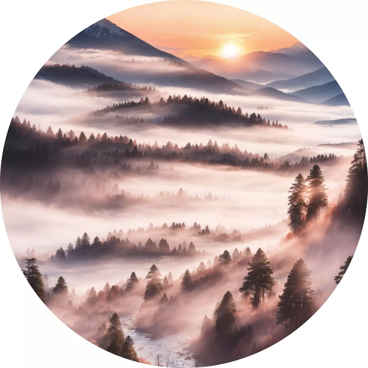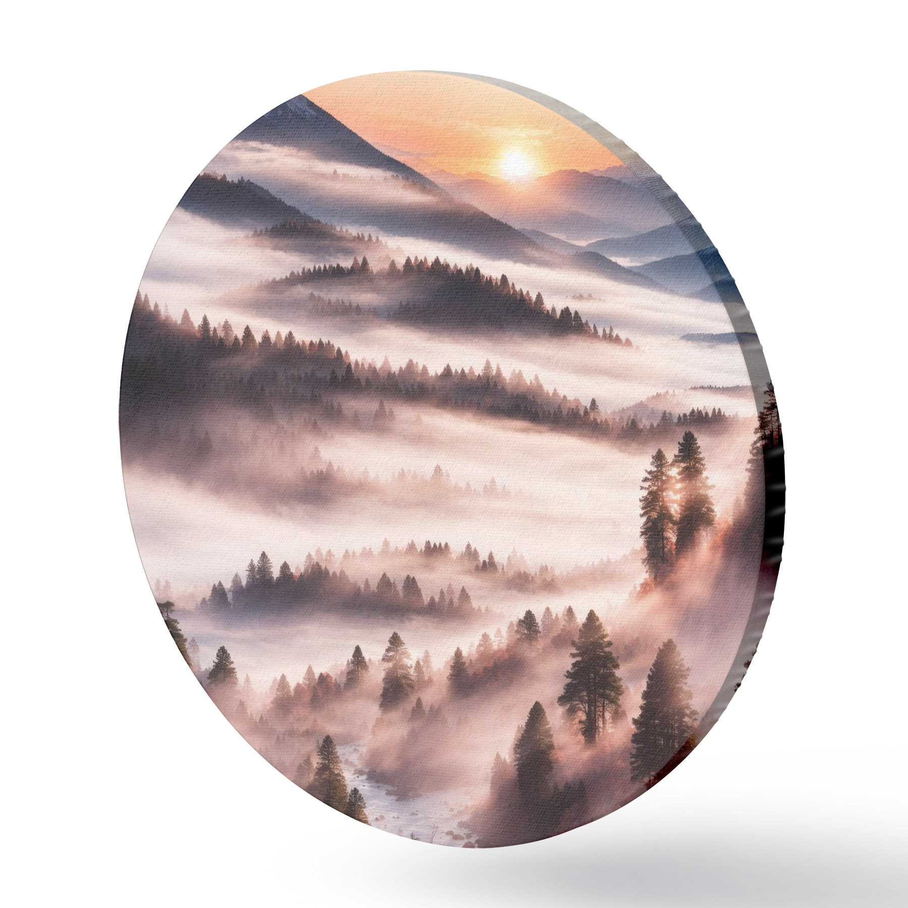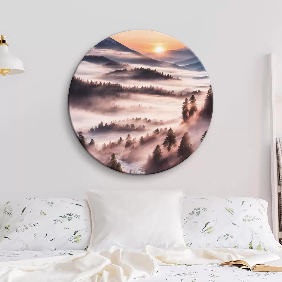 Runde Gemälde Blick auf den nebligen Wald r36050