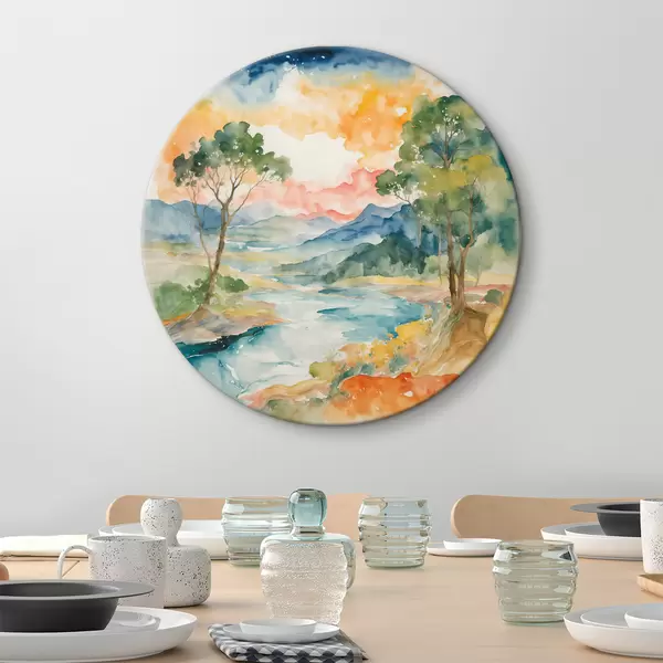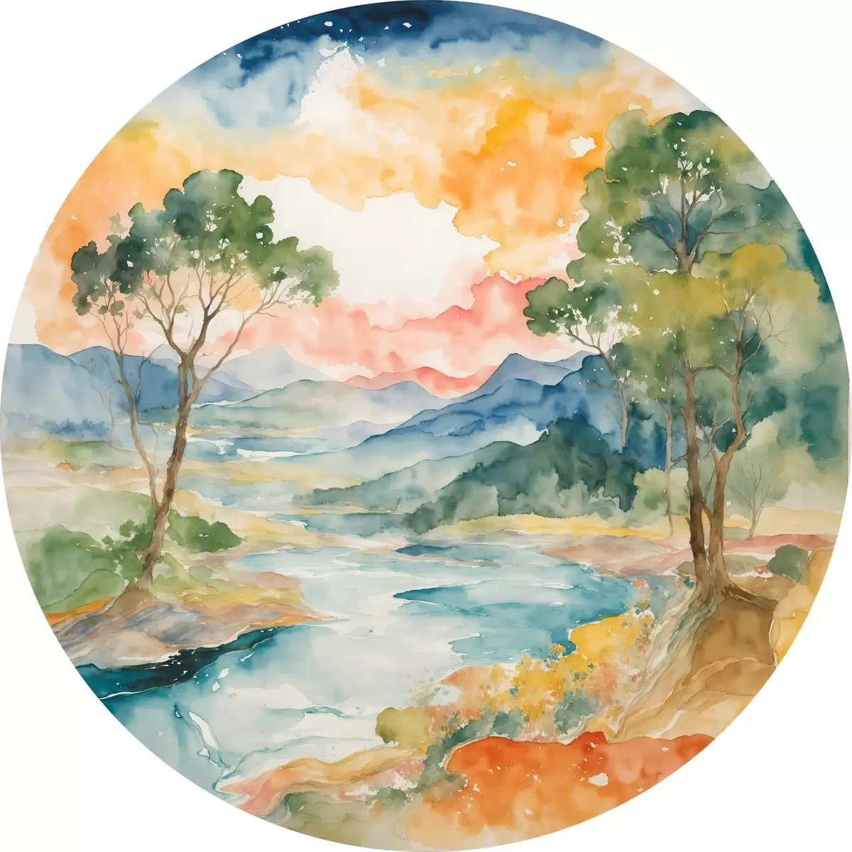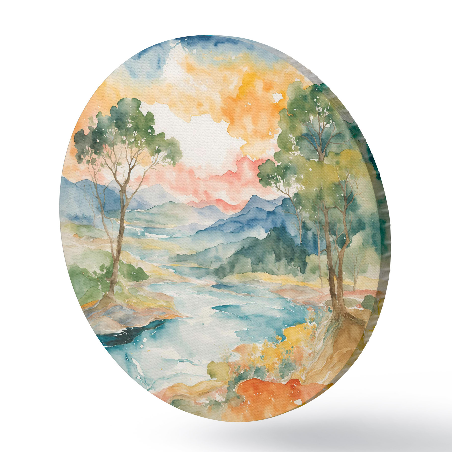 Runde Gemälde Fluss und Bäume in Aquarell r36054