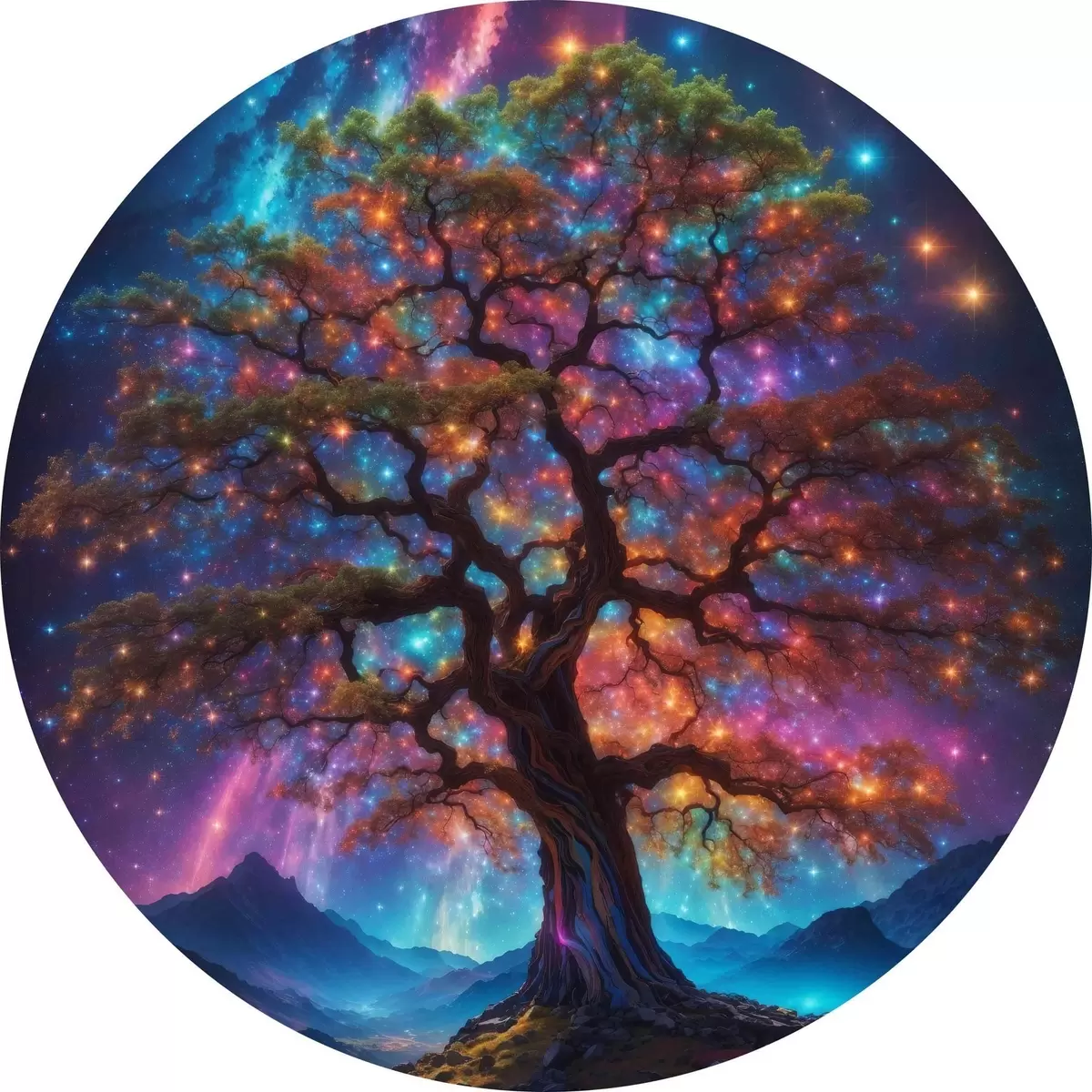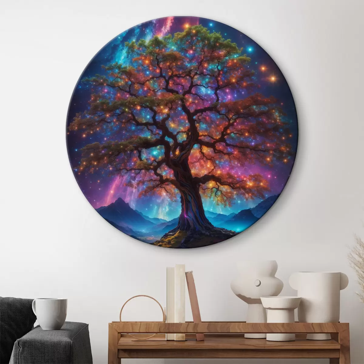 Runde Gemälde Ein Baum vor dem Sternenhimmel r36059
