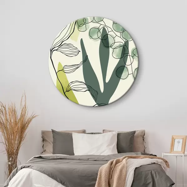 Runde Gemälde Abstrakte Aquarellblumen und Blätter r36133