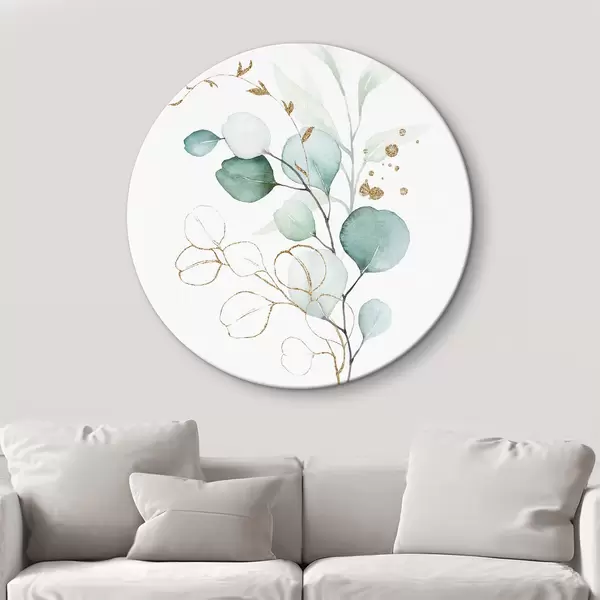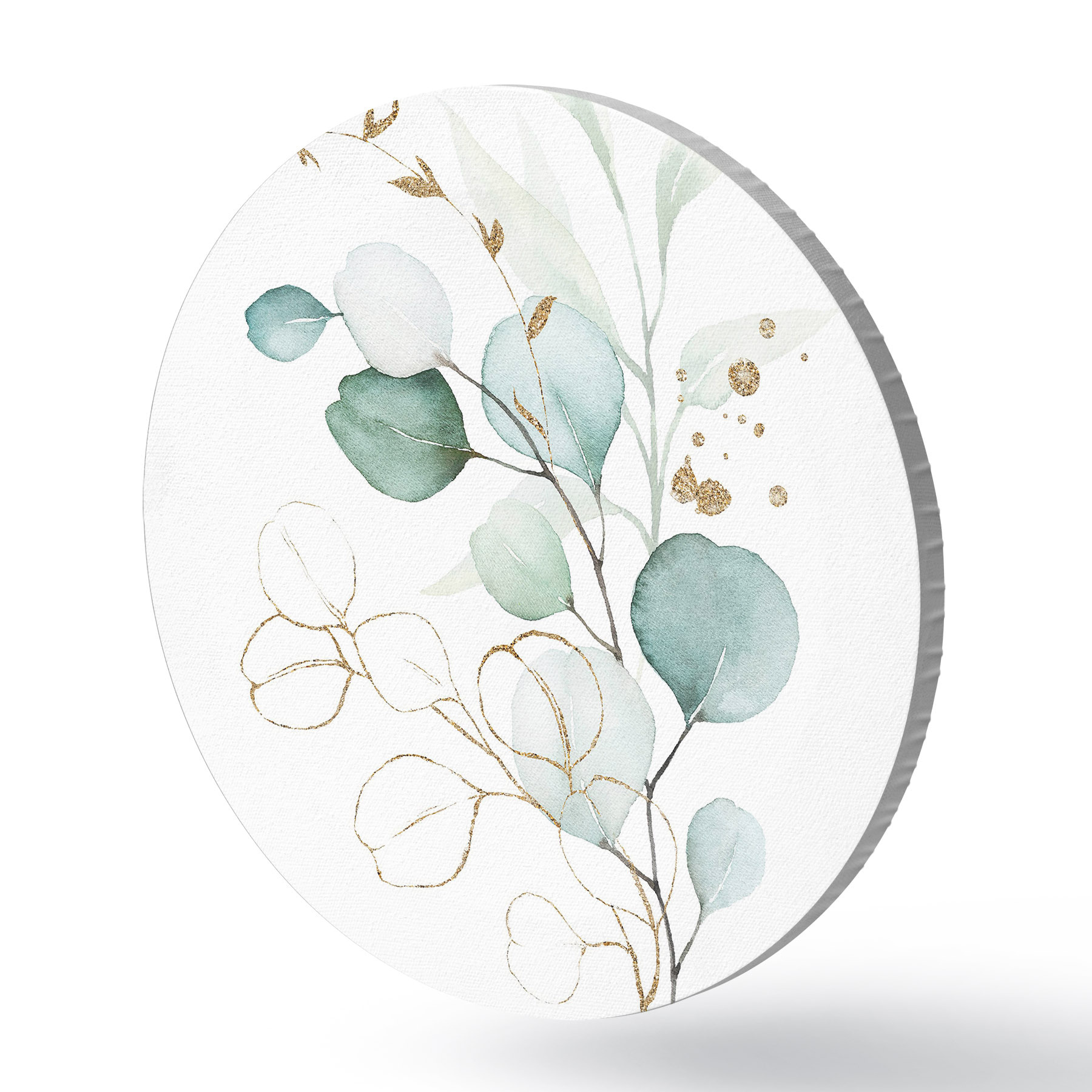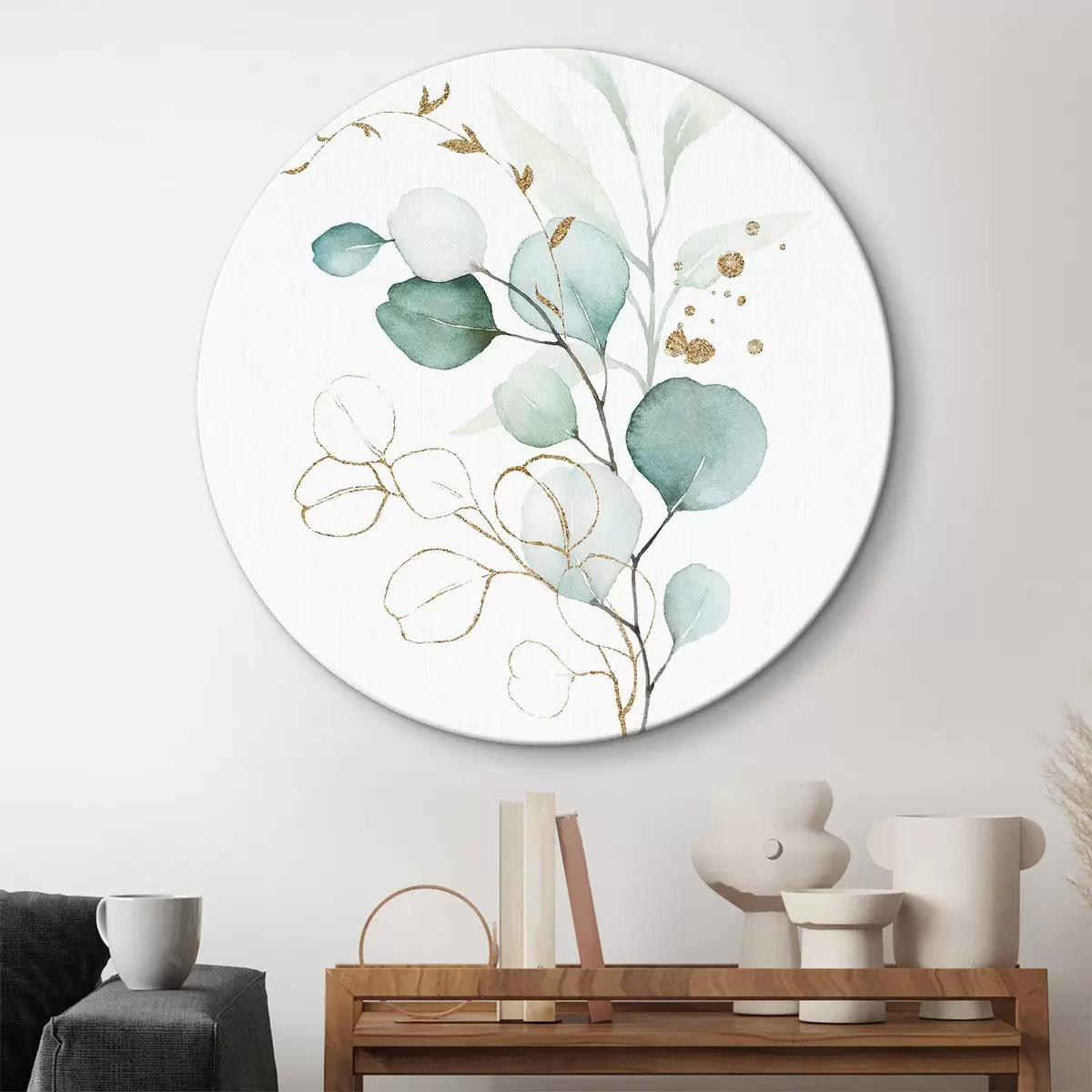 Runde Gemälde Aquarell mit einem Zweig mit blauen Blättern r36138