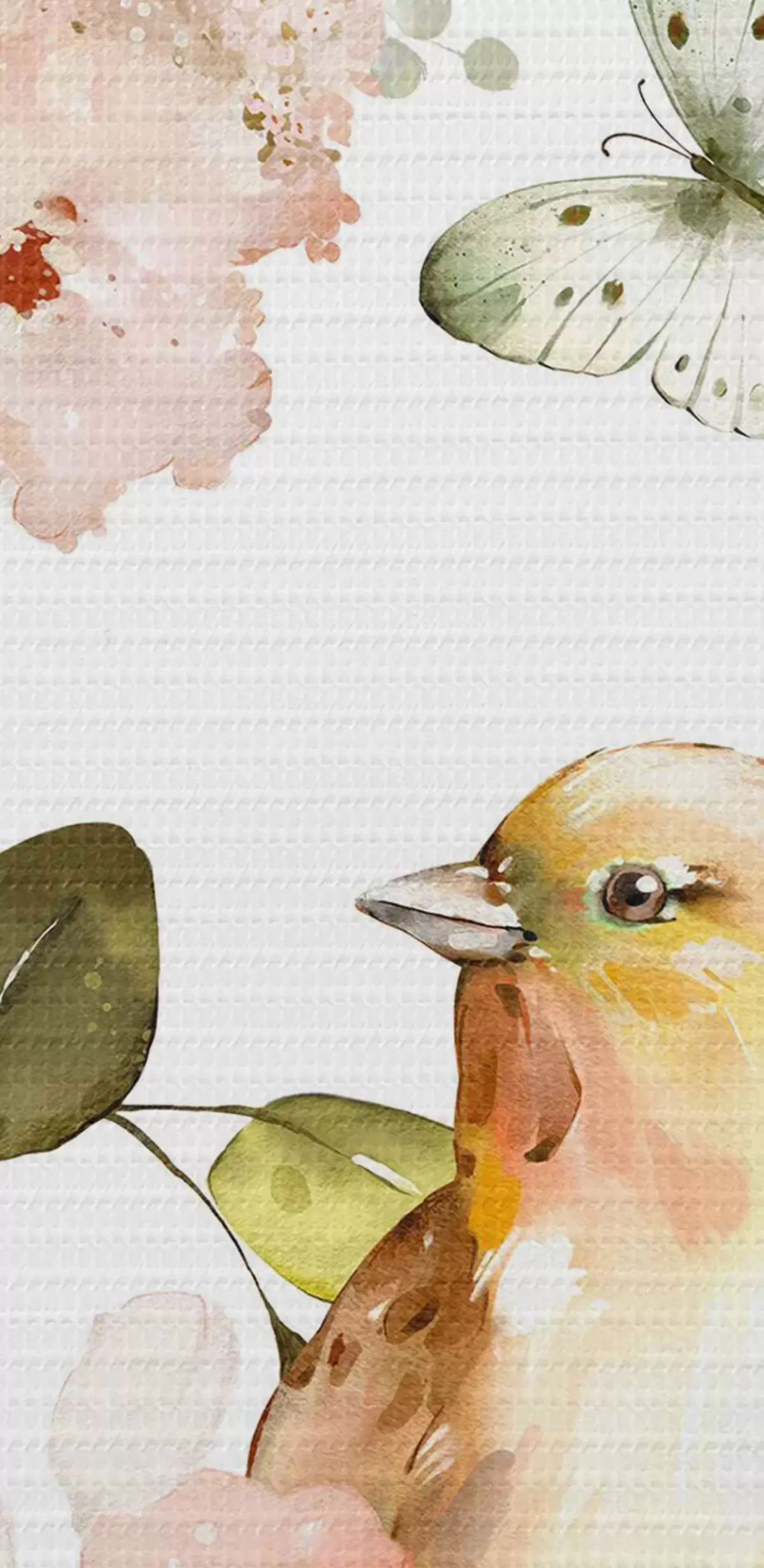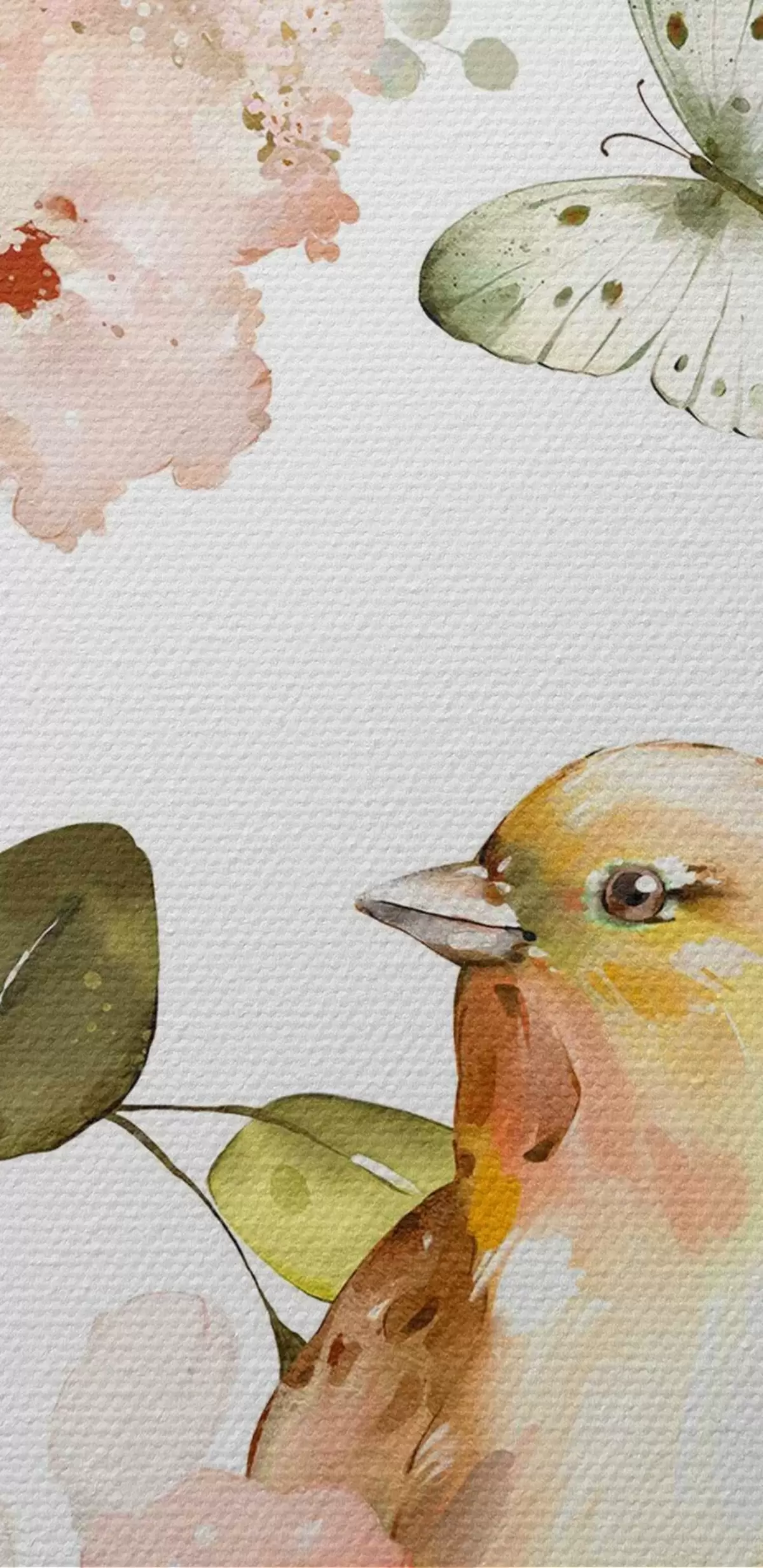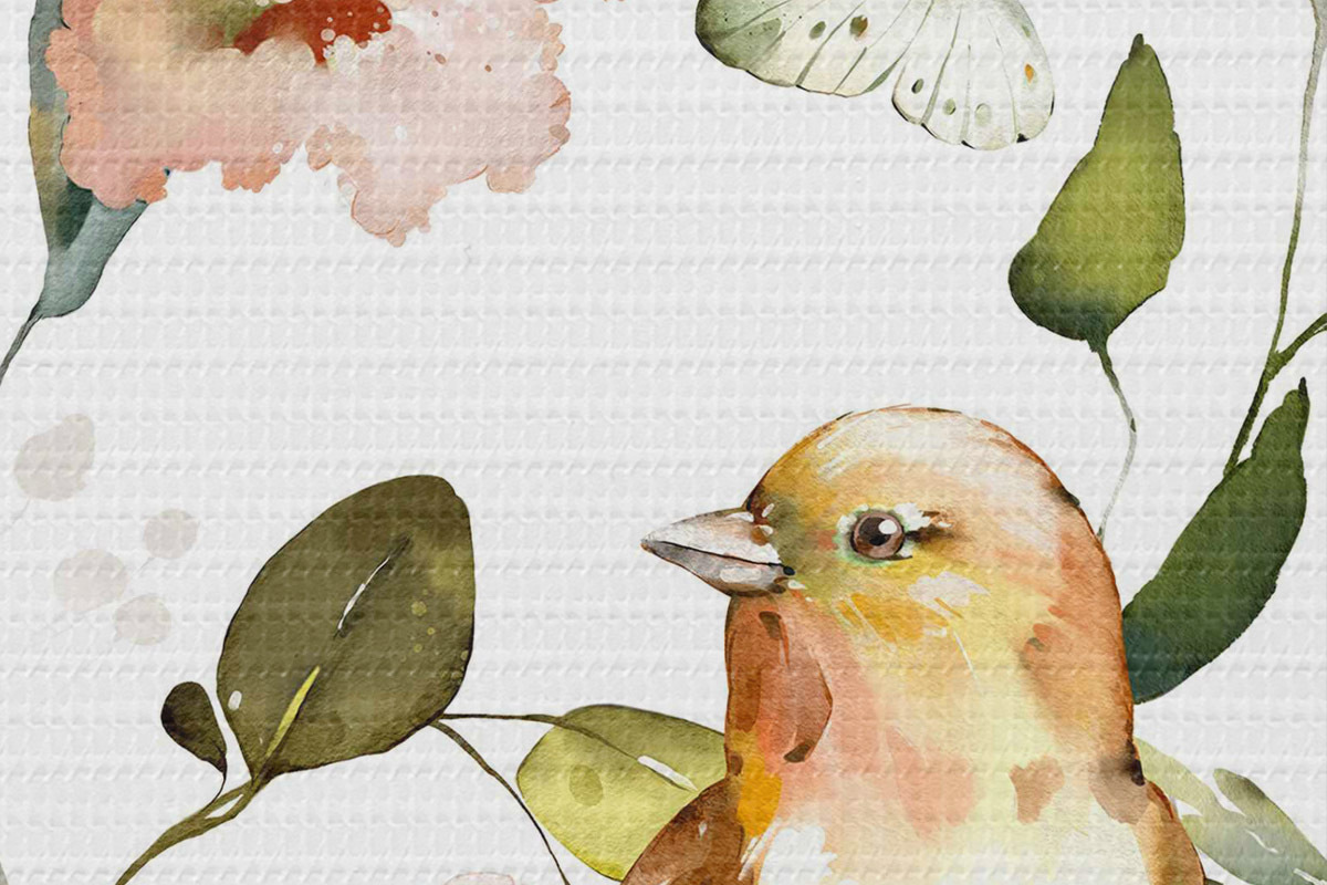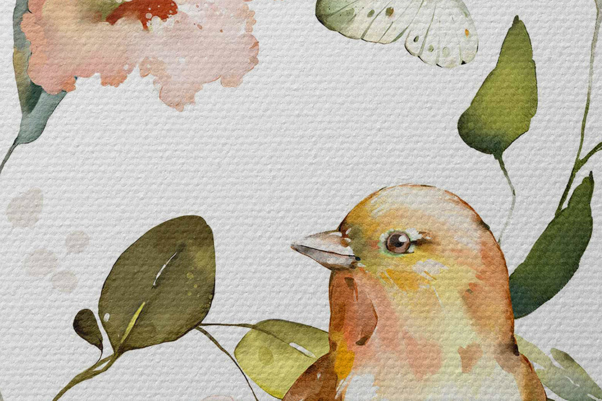Bild Aquarell mit Blumen, Vögeln und Schmetterlingen auf einem weißen Hintergrund Nr r36153