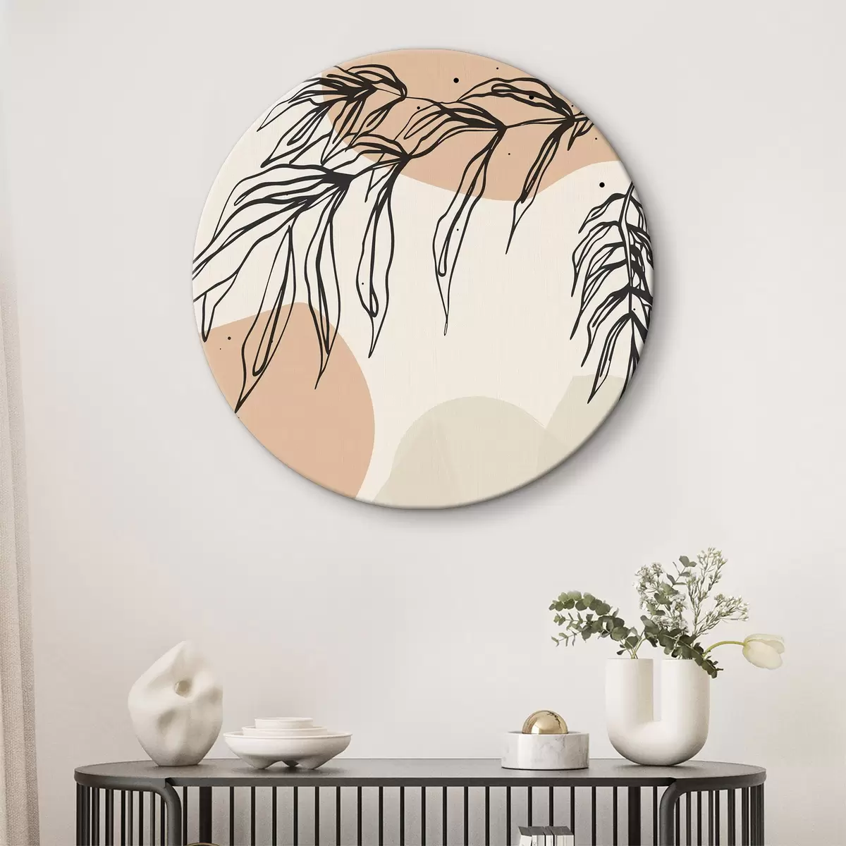Runde Gemälde Abstrakte Blätter, Linien in verschiedenen Formen r36186