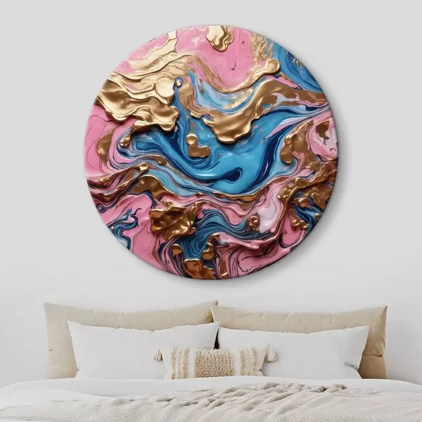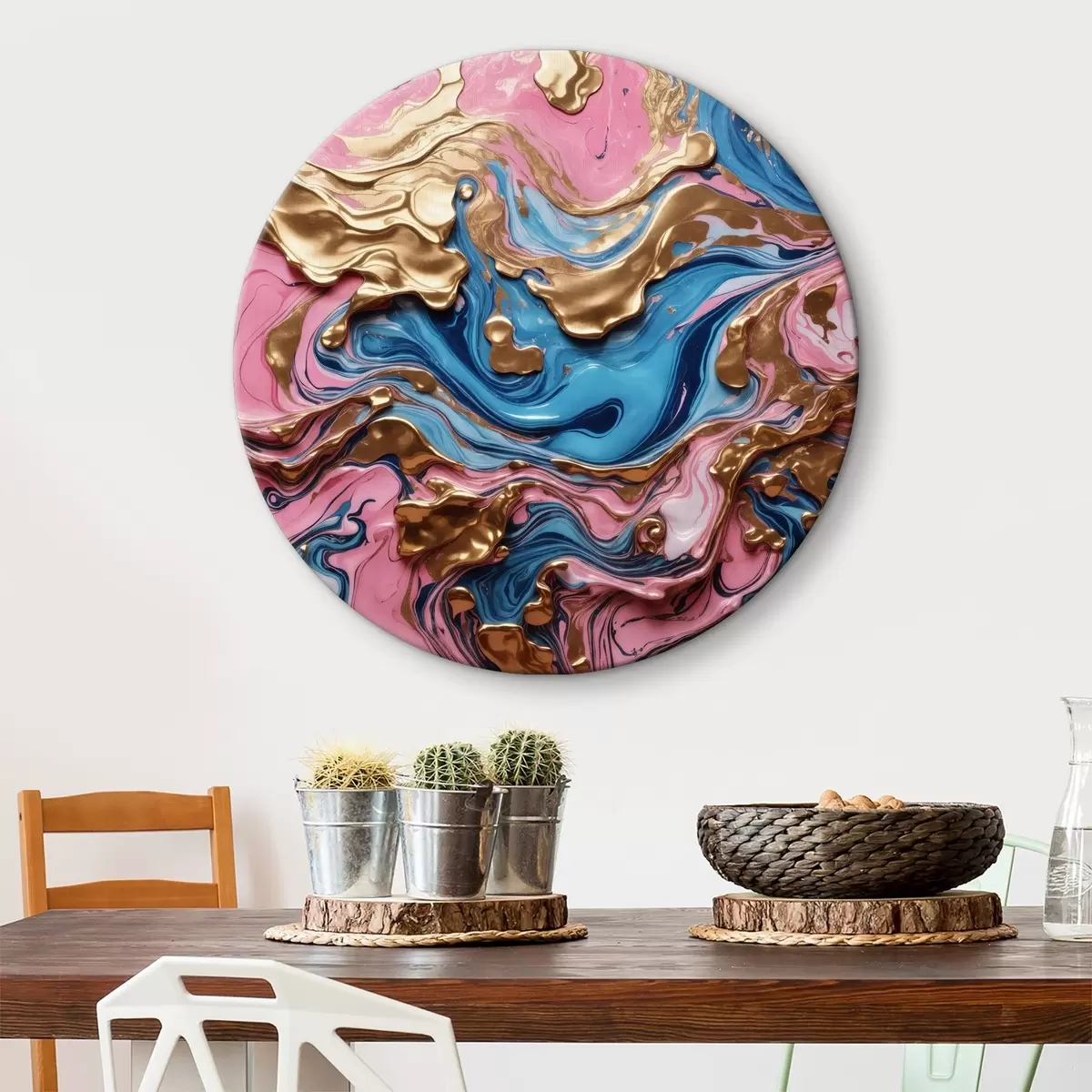 Runde Gemälde Farbenfroher Glanz in Rosa und Blau r36227