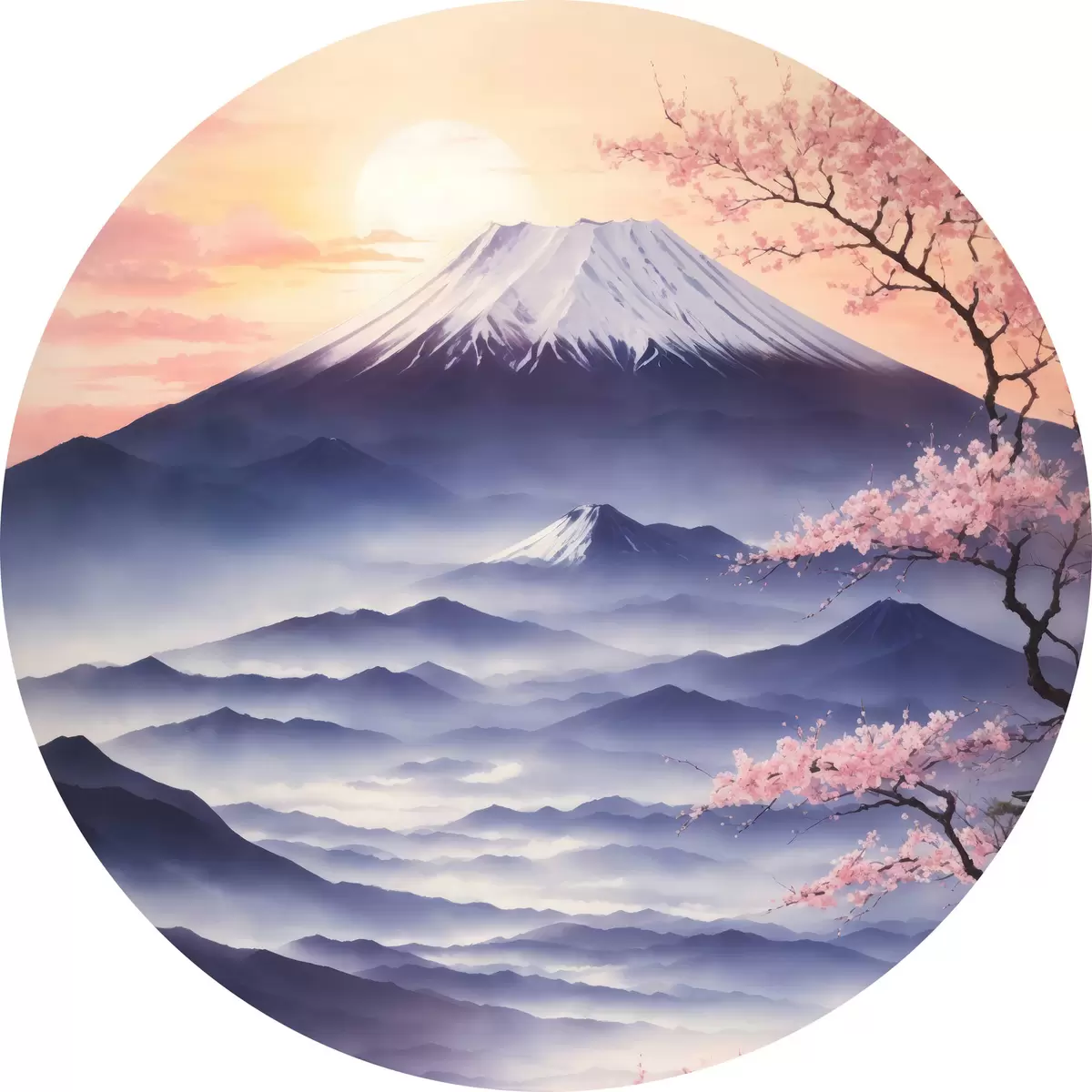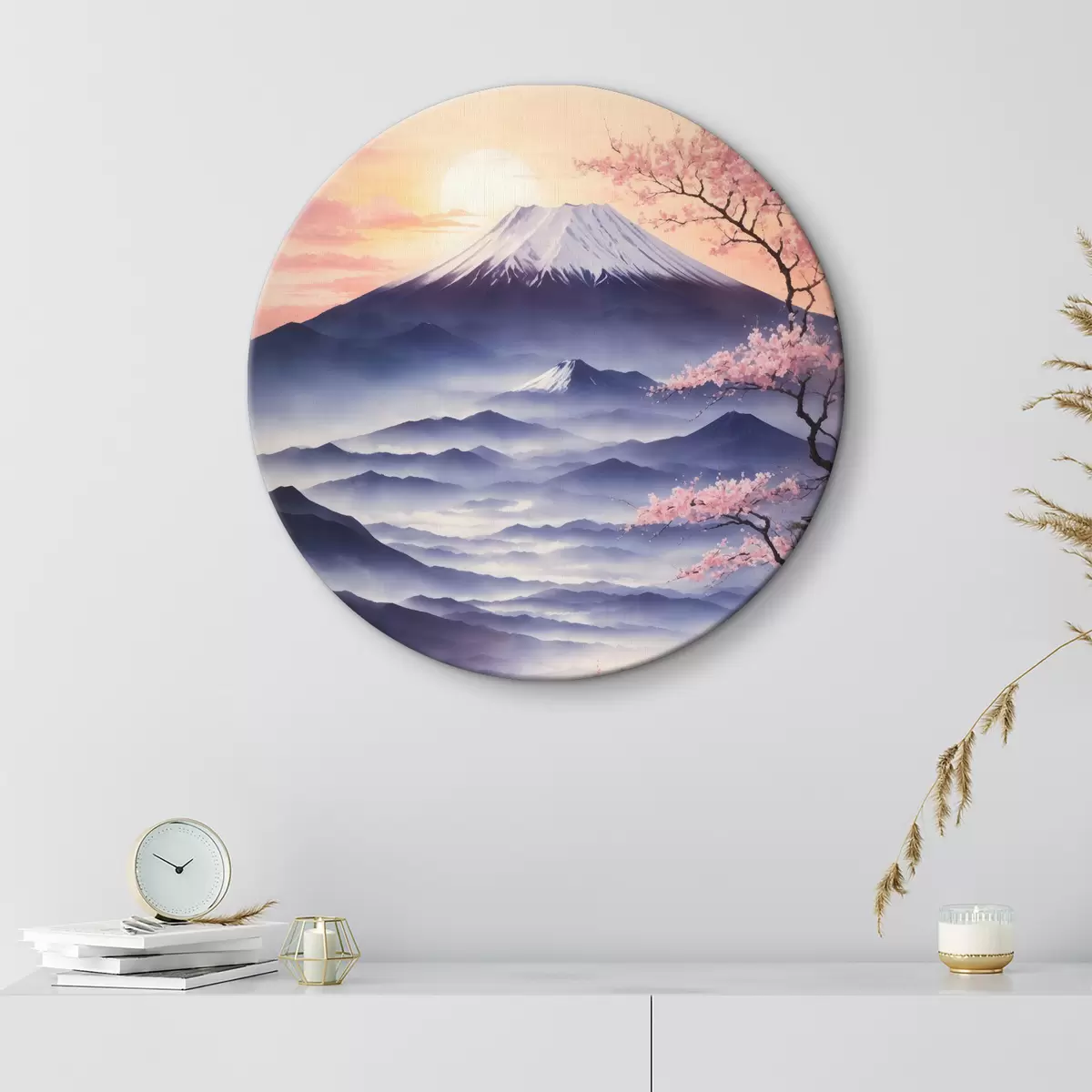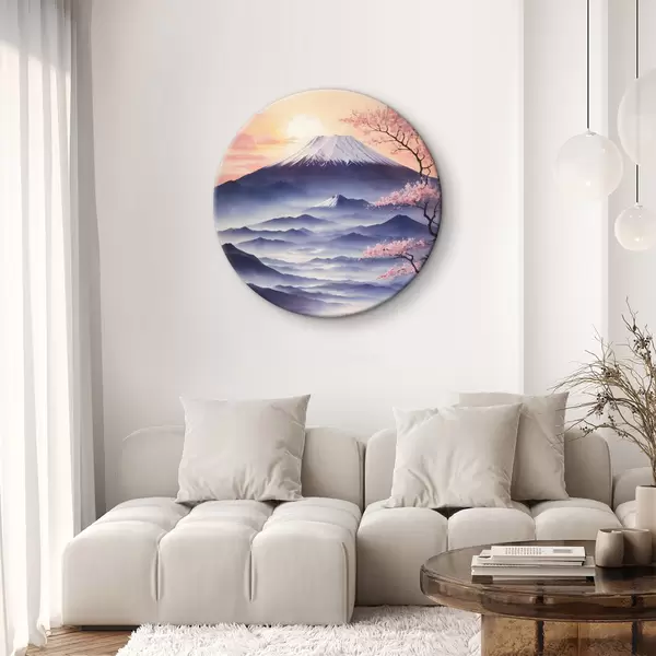 Runde Gemälde Blick auf einen friedlichen Vulkan mit einer schneebedeckten Spitze r36233