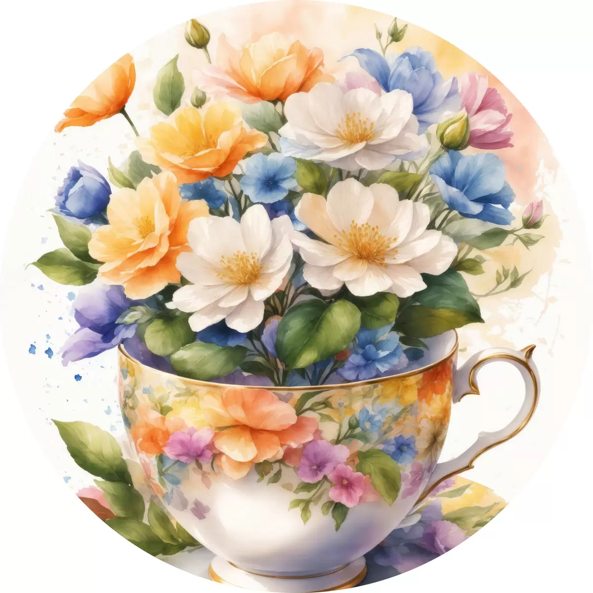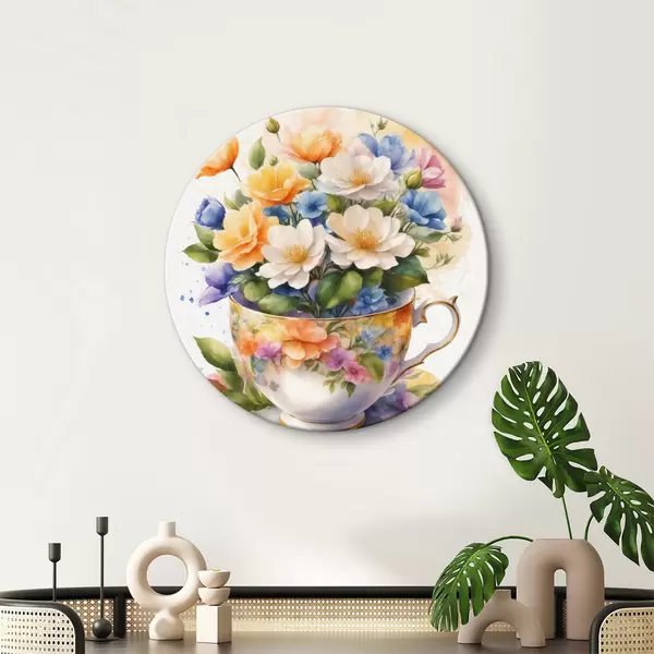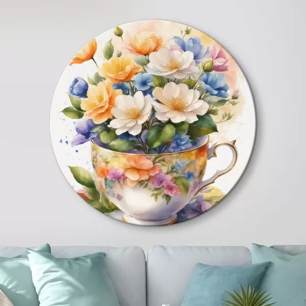 Runde Gemälde Blumenstrauß in Aquarell r36244