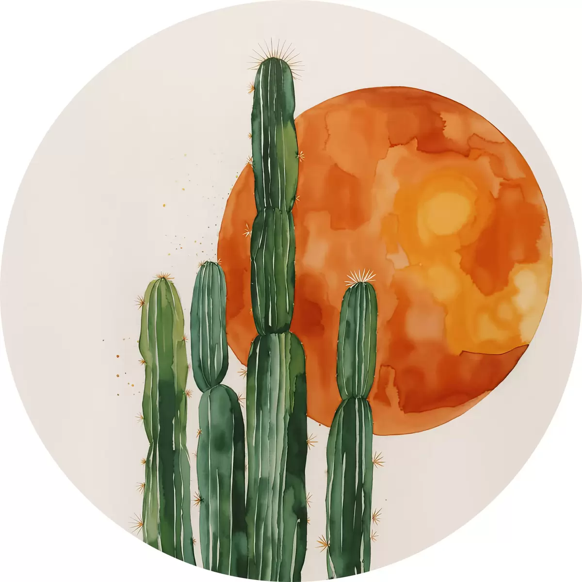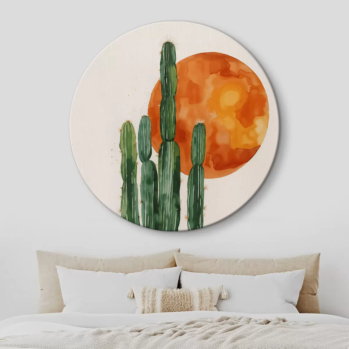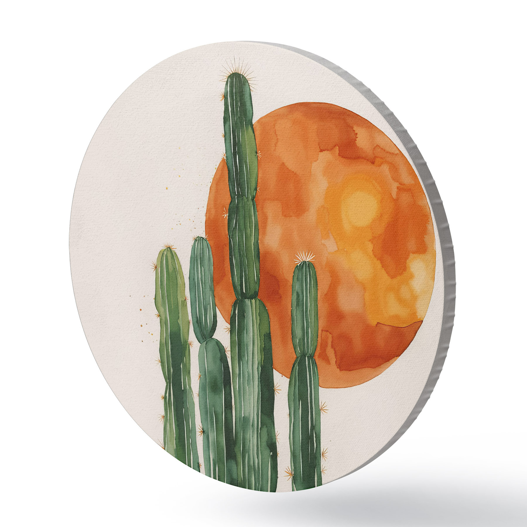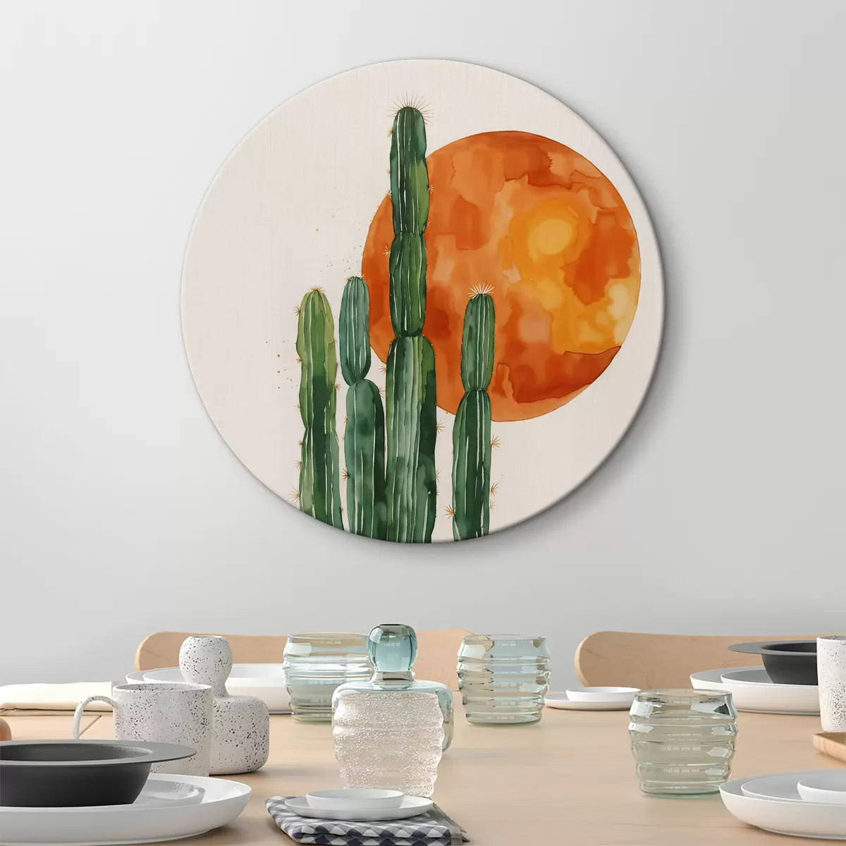 Runde Gemälde Kaktus in der Wüste vor dem Hintergrund der Sonne in Aquarell r36269