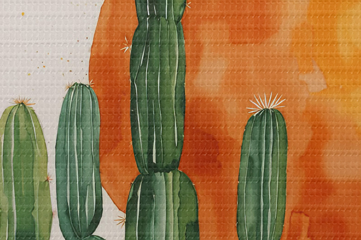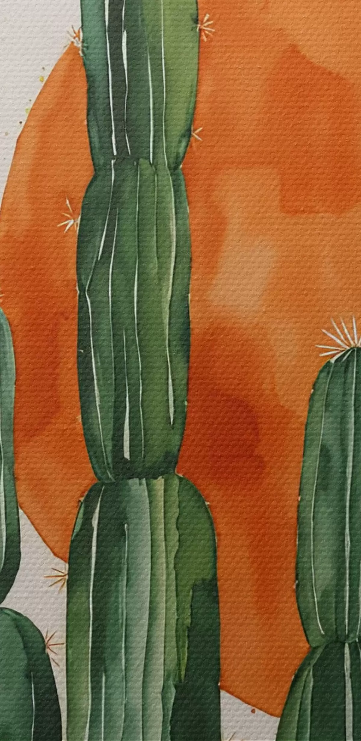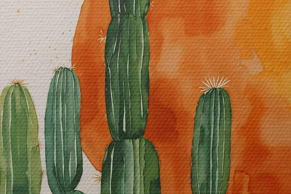 Bild Kaktus in der Wüste vor dem Hintergrund der Sonne in Aquarell Nr r36269