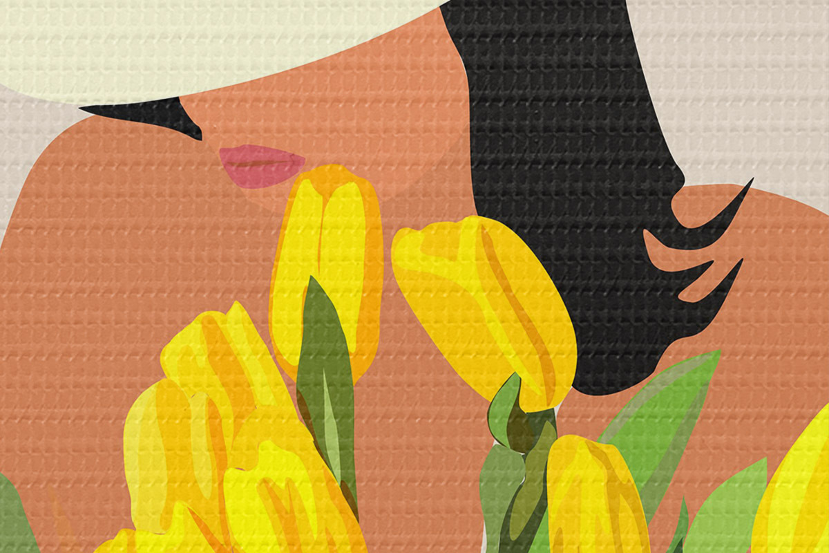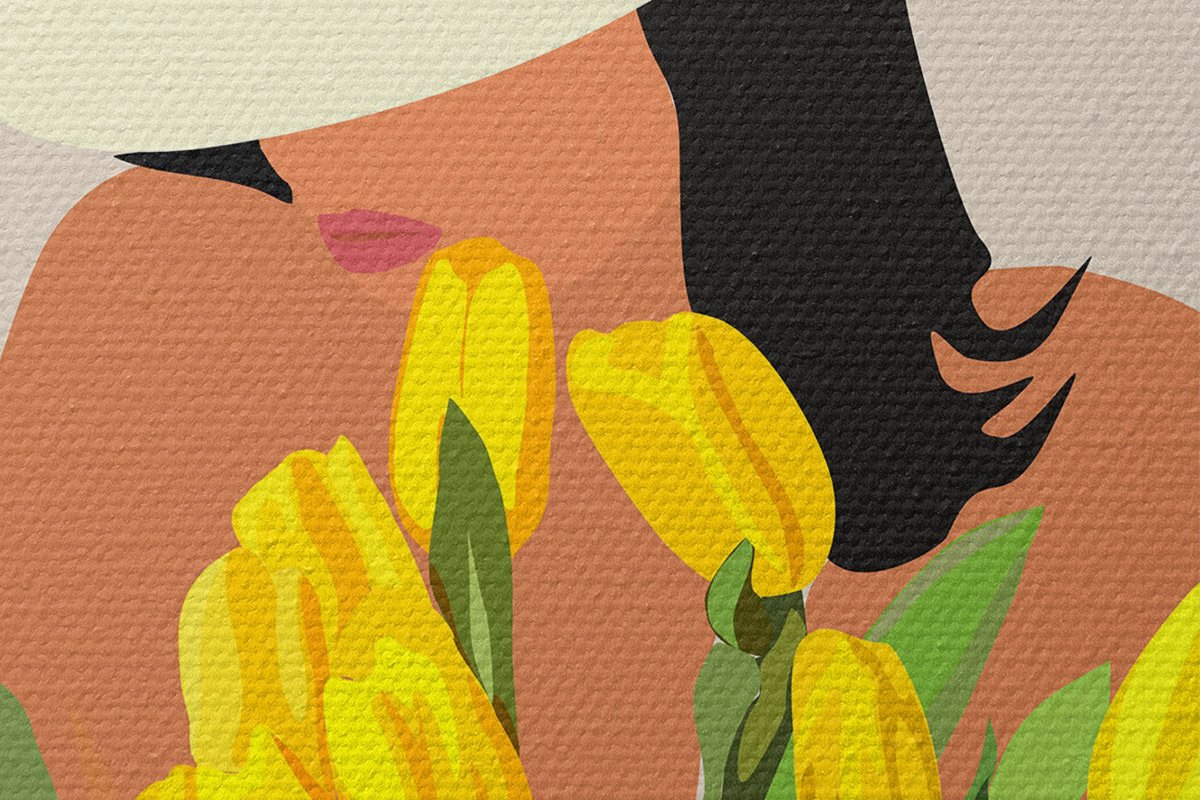 Bild Mädchen mit gelben Blumen abstrakten Boho-Stil Nr r36336