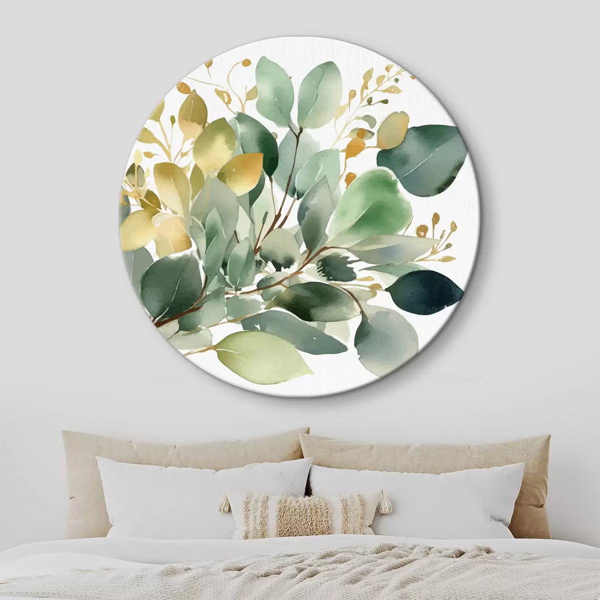 Runde Gemälde Blumenstrauß aus Eukalyptuszweigen im Aquarellstil r36365