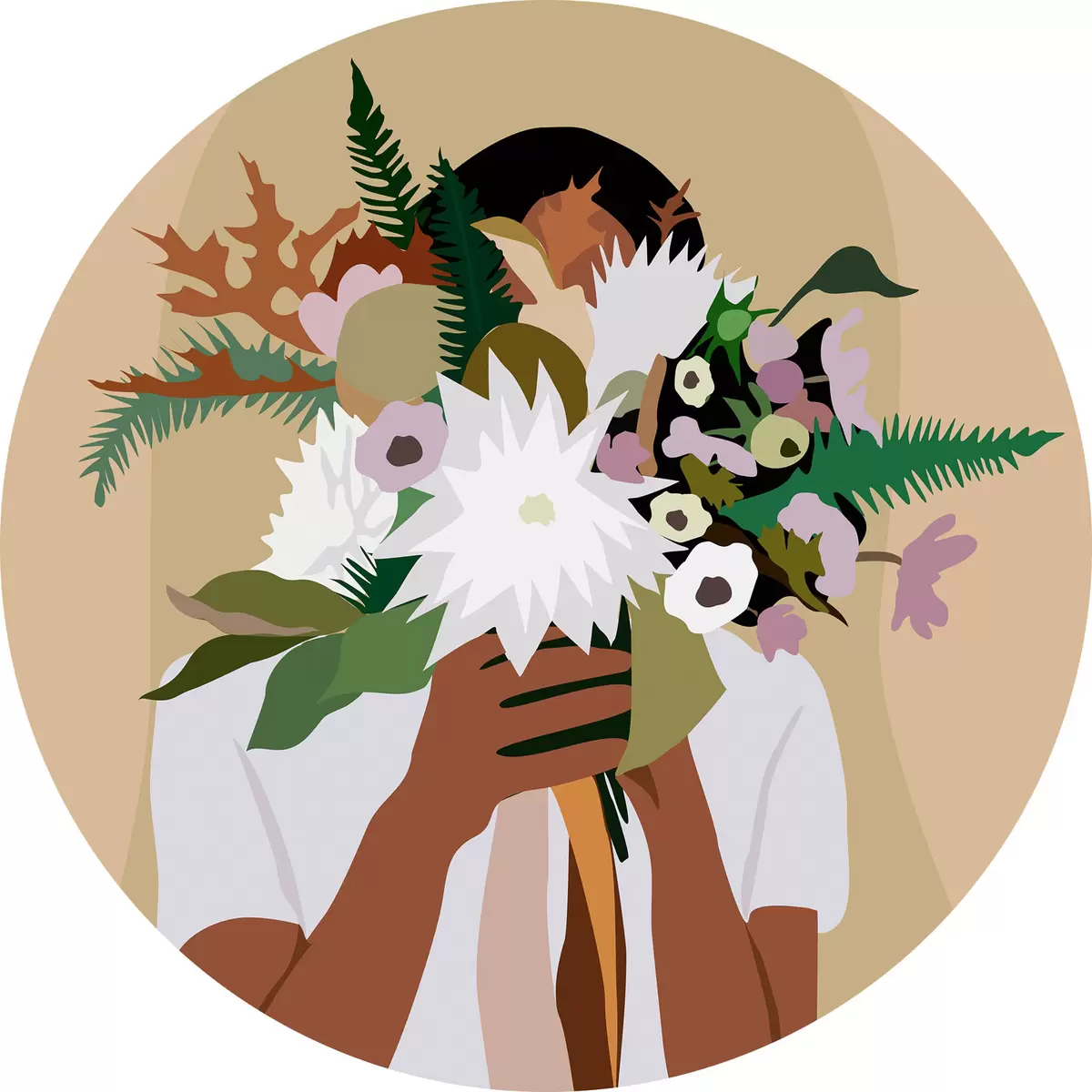 Bild Mädchen mit einem Blumenstrauß abstrakten Boho-Stil Nr r36367